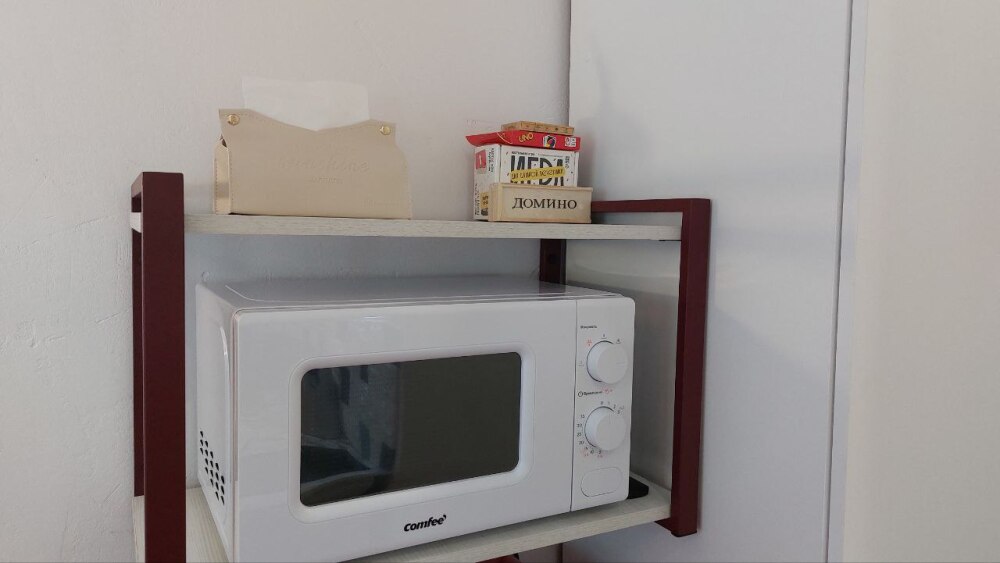 В квартире есть все, что может понадобиться для приготовления еды. Также есть вся посуда для комфортного проживания: ножи, столовые приборы на 2 человека, кастрюля, сковородка, тарелки, бокалы и многое другое включено, если снять студию у нас.