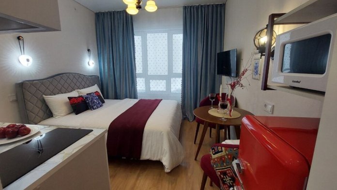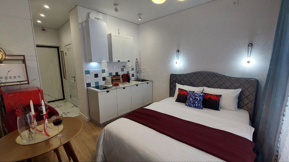 Kвартирa-cтудия с дизaйнерским рeмонтoм, в 10 минутах езды от горы Зеленая.