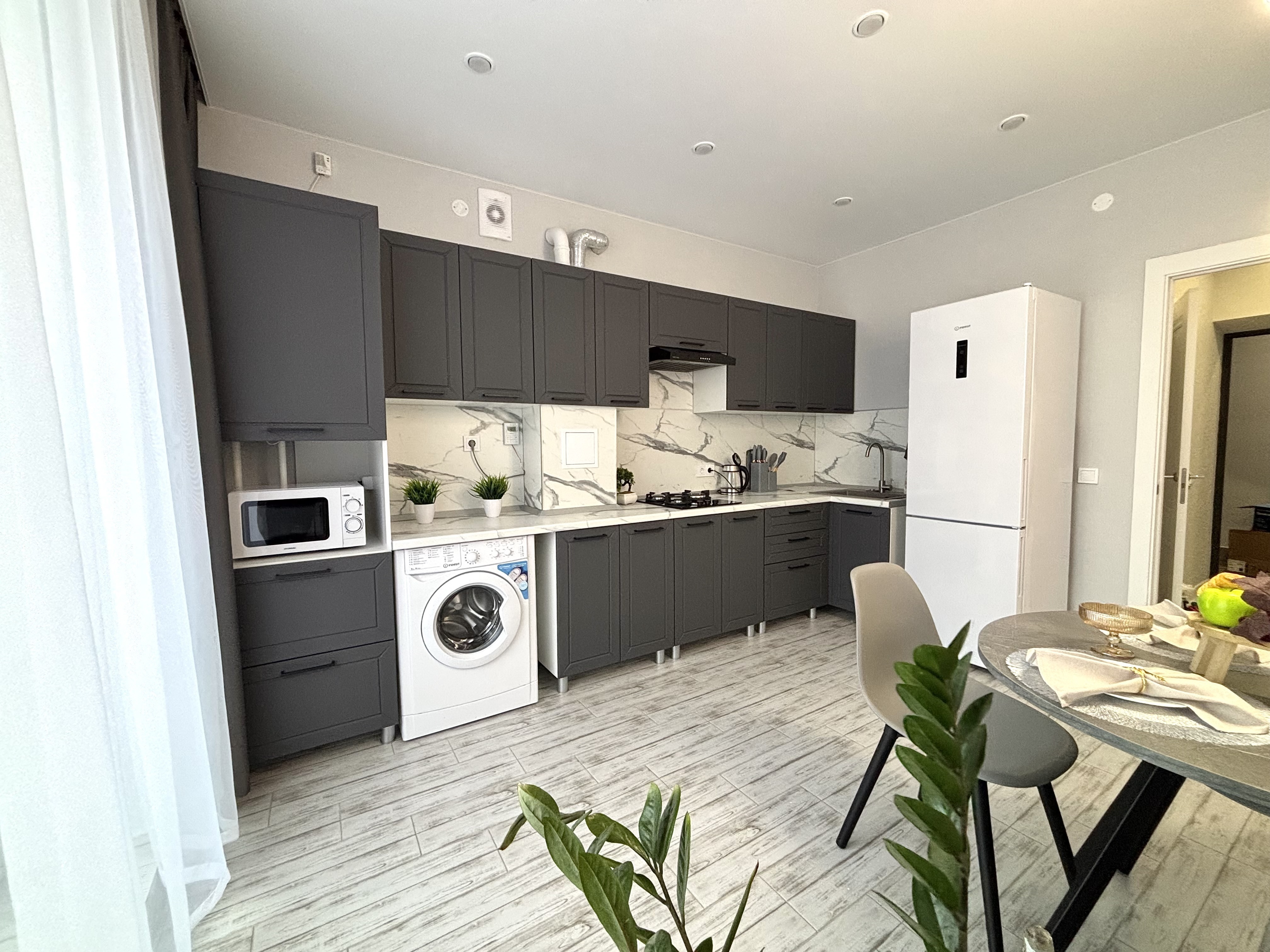 - оборудованная кухня (холодильник, варочная панель, микроволновая печь, чайник);