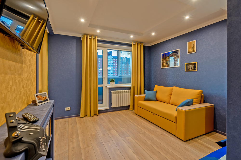 Квартира полностью оборудована для проживания: бытовая техника; мебель; чистые постельное белье и полотенца; фен, утюг, гладильная доска, стиральная машина; современный телевизор; интернет Wi-Fi 100 мбит/с; холодильник; домофон; набор кухонных принадлежностей, микроволновка и т.д.