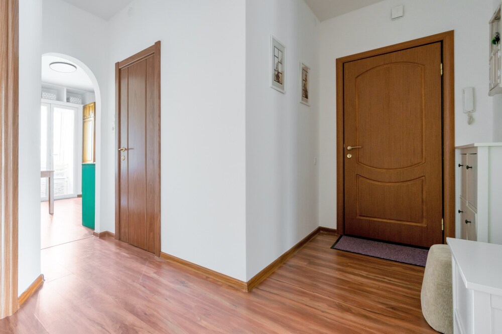 Просторная гардеробная в прихожей.