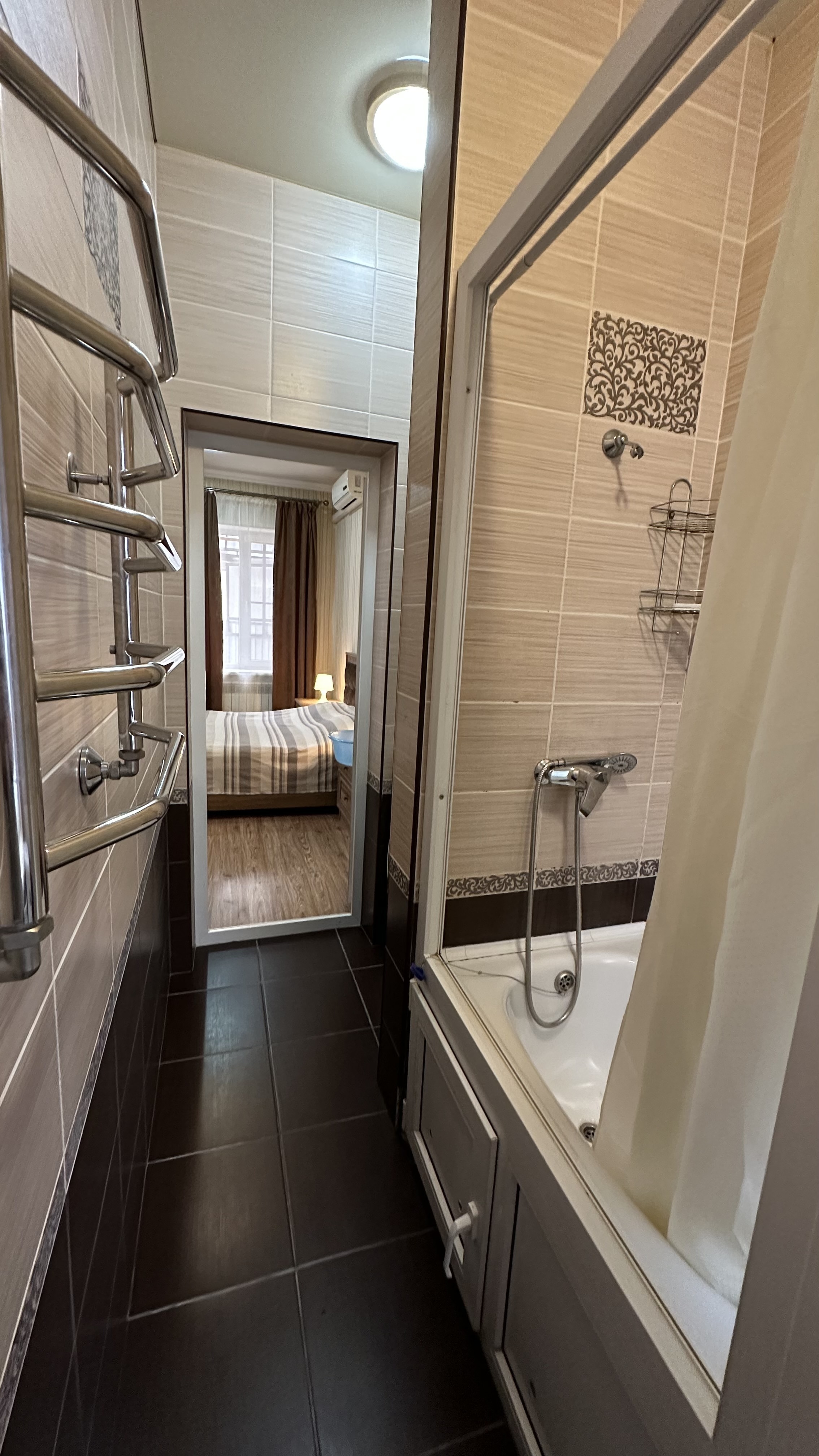 Санузел: ванна, унитаз, раковина, стиральная машина автомат. Постельное и банное белье выдаем.