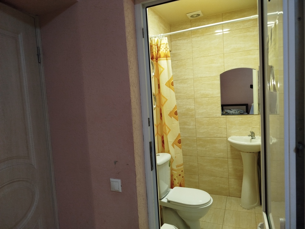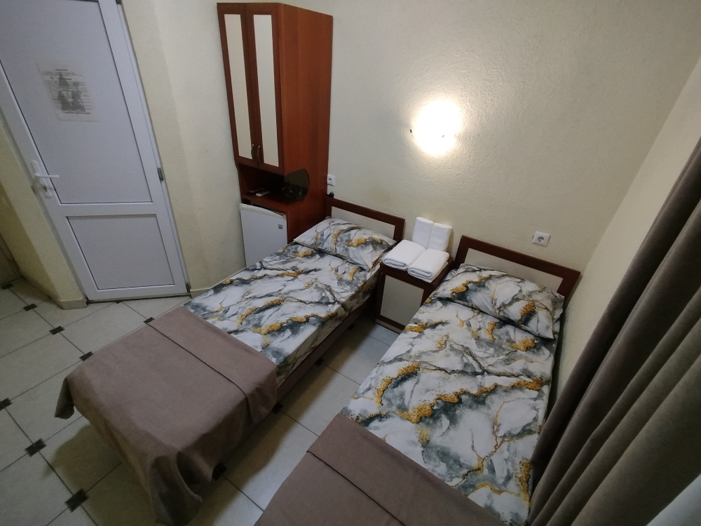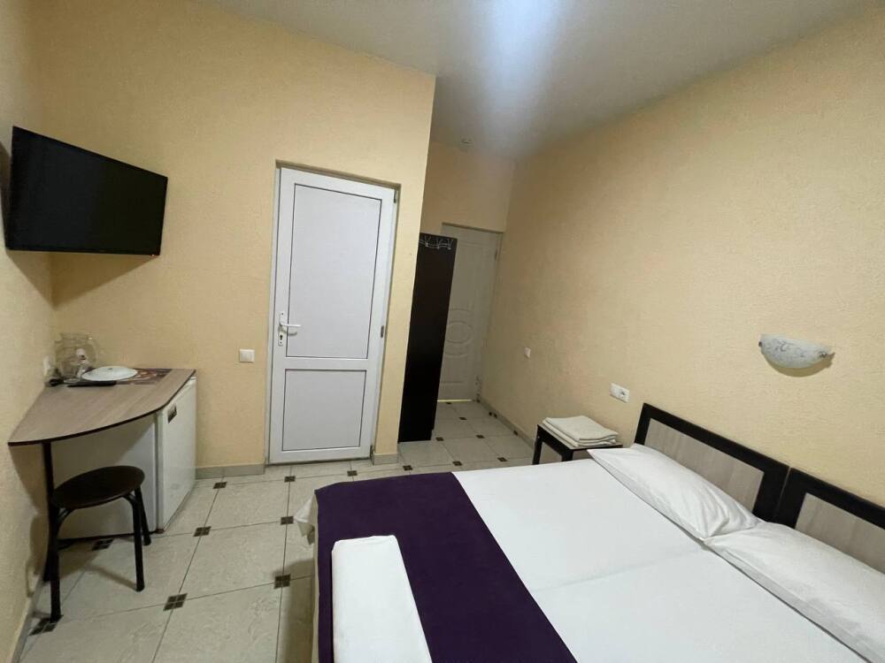 Таких номеров всего 7, на 1, 2, 3, 4 этажах. Электрочайник, микроволновая печь, фен, утюг, гладильная доска находятся на каждом этаже, в коридоре, для общего пользования. Есть летняя кухня со всем инвентарем. конечная уборка входит в стоимость. При длительном проживании уборка и смена белья за отдельную стоимость.