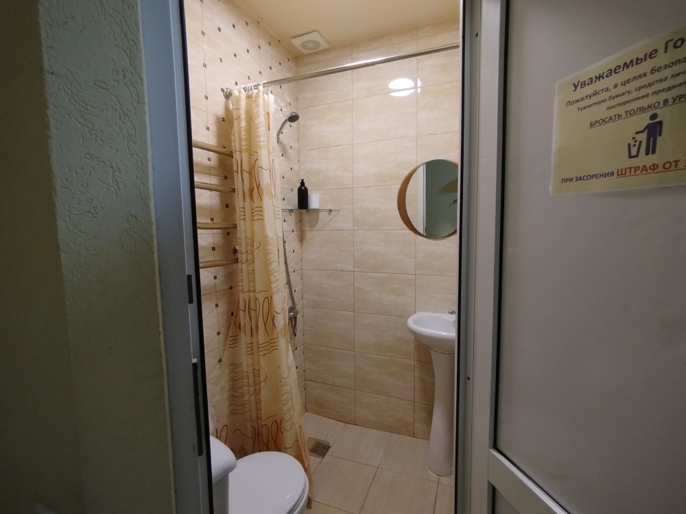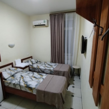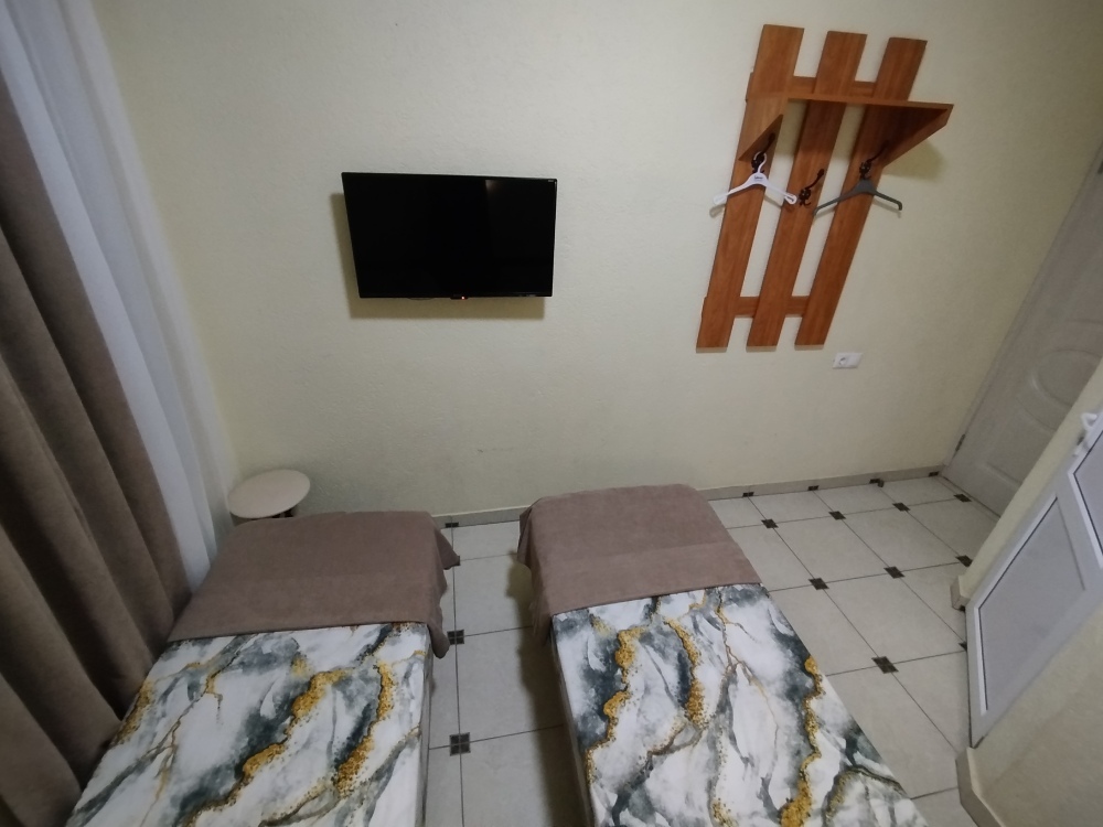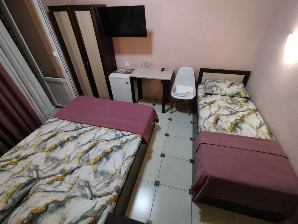 Таких номеров всего 3, на 2, 3, 4 этаже. Электрочайник, микроволновая печь, фен, утюг, гладильная доска находятся на каждом этаже, в коридоре, для общего пользования. Есть летняя кухня со всем инвентарем. конечная уборка входит в стоимость. При длительном проживании уборка и смена белья за отдельную стоимость.