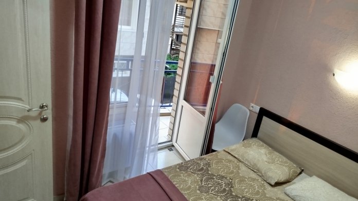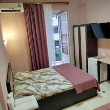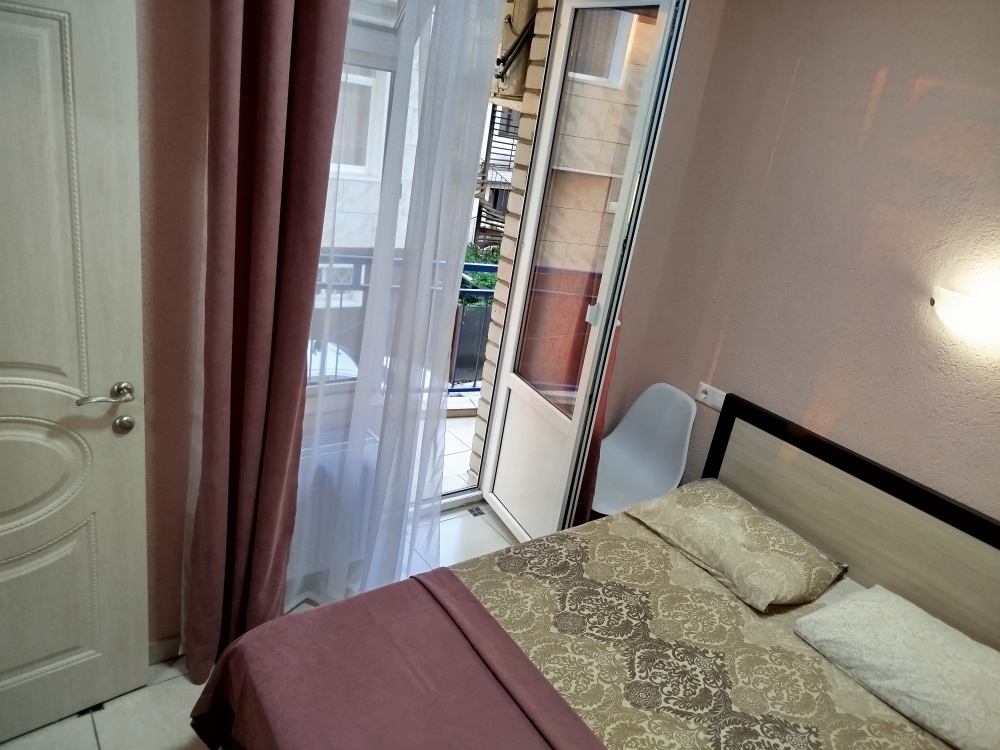 Таких номеров всего 4, на 1, 2, 3, 4 этажах. Первый этаж без балкона. Электрочайник, микроволновая печь, фен, утюг, гладильная доска находятся на каждом этаже, в коридоре, для общего пользования. Есть летняя кухня со всем инвентарем. Конечная уборка входит в стоимость. При длительном проживании уборка и смена белья за отдельную стоимость.