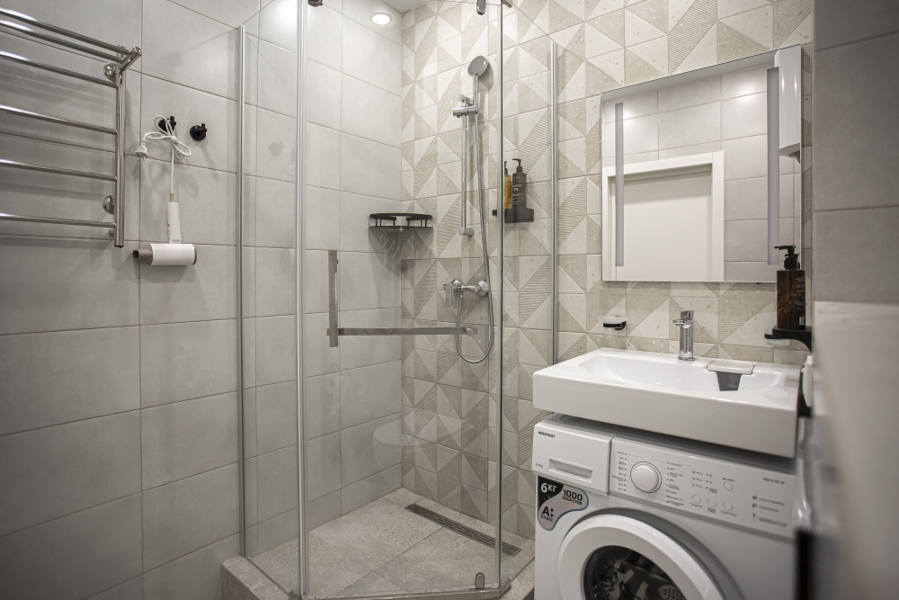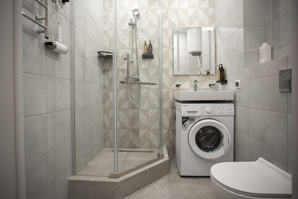 Бытовая техника: стиральная машина, кондиционер (сплит-система), фен, утюг, сушилка для белья.