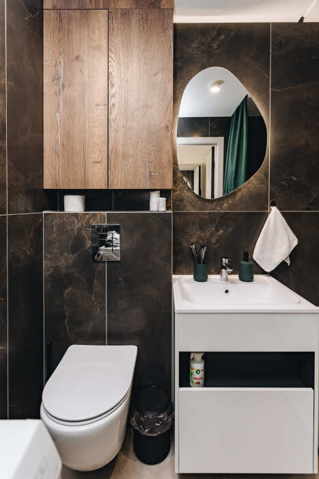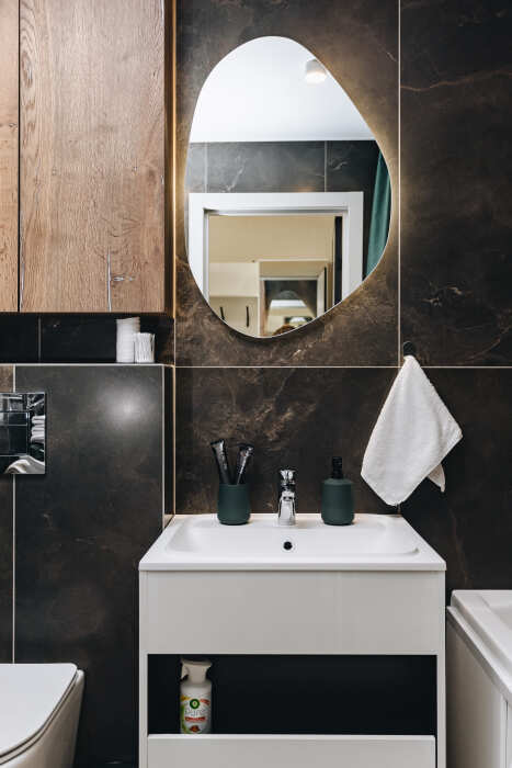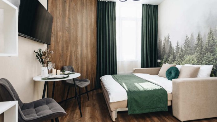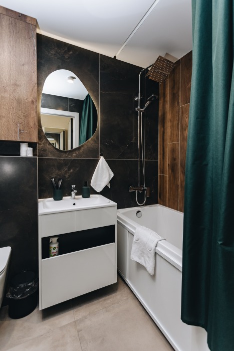 Kвартирa cтудия с дизaйнерским рeмонтoм, в 10 минутах езды от горы Зеленая.