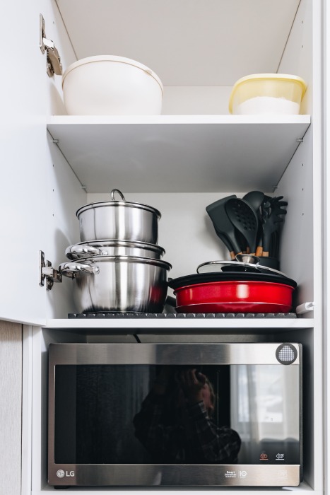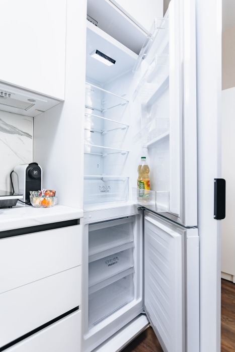 В квартире есть все, что может понадобиться для приготовления еды. Также есть вся посуда для комфортного проживания: ножи, столовые приборы на 2 человека, кастрюля, сковородка, тарелки, бокалы и многое другое включено, если снять студию у нас.