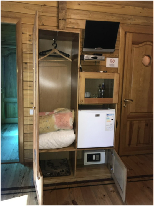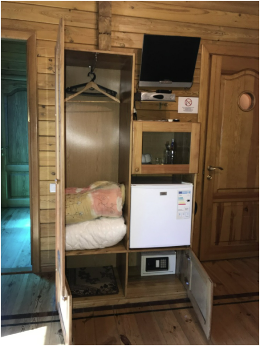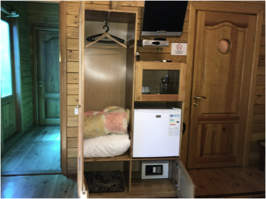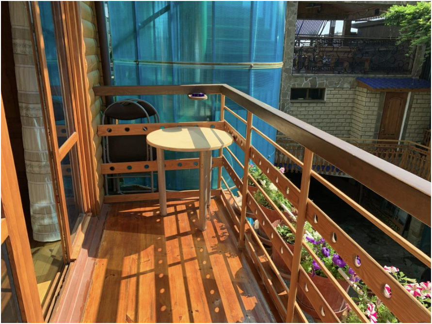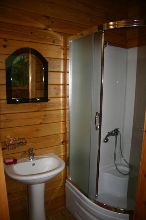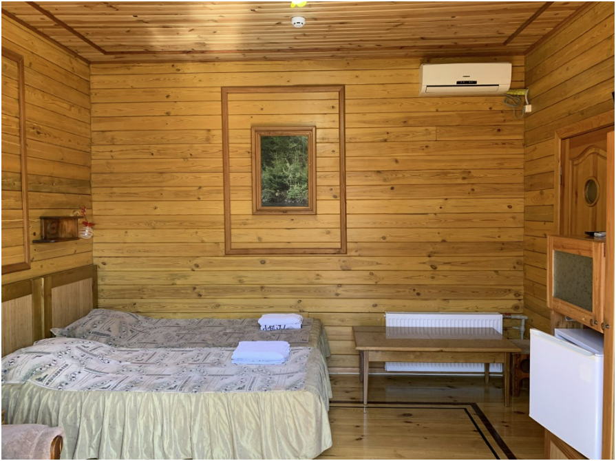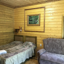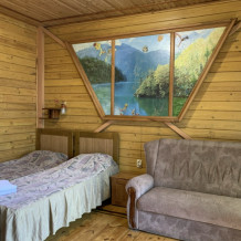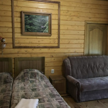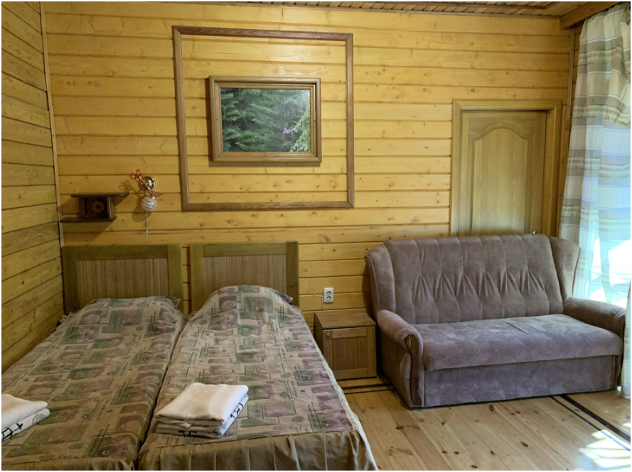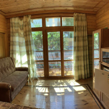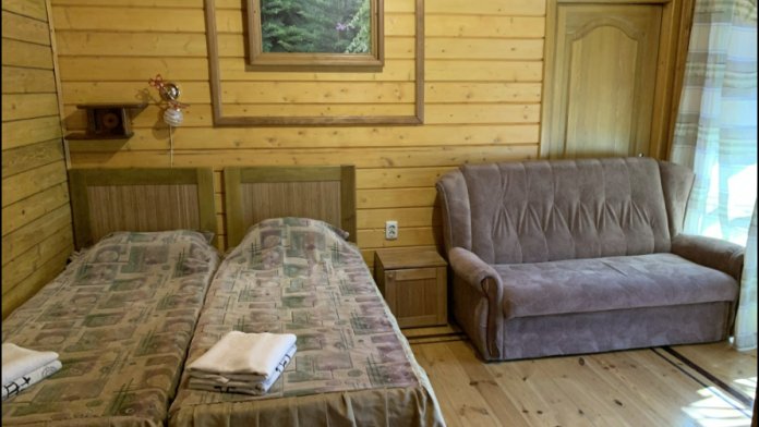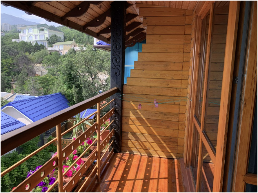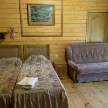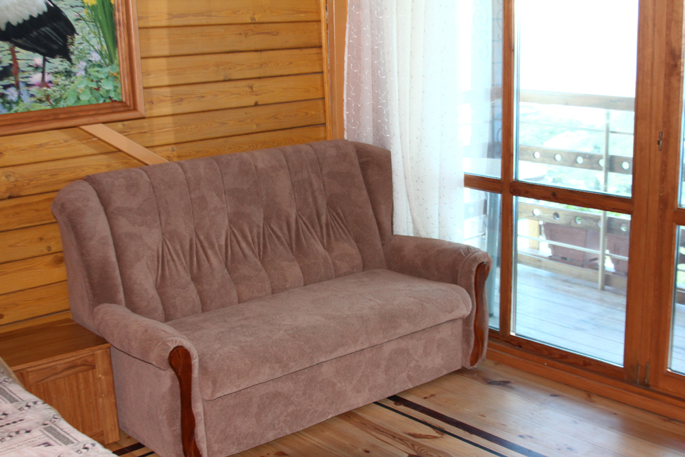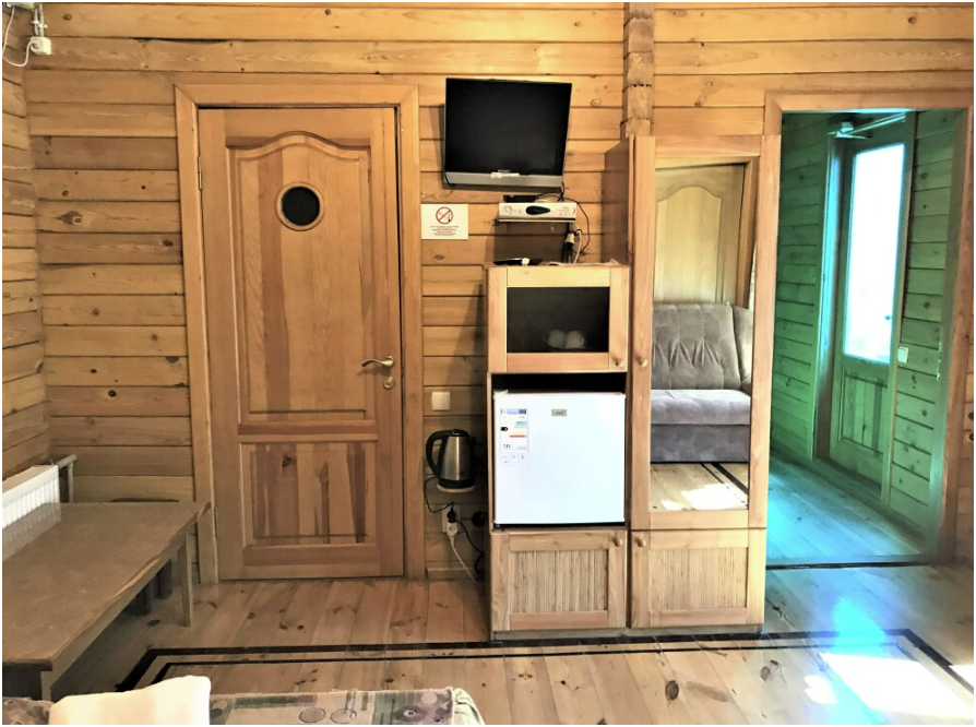 Просторный номер состоит из одной комнаты с санузлом. В комнате две односпальные кровати и большой диван. Журнальный столик, шкаф, тумба. Телевизор, кондиционер, холодильник, чайник. В санузле: душ, раковина, унитаз. Стиральная машинка и гладильная доска предоставляются. Есть место где пообедать, приготовить шашлык. Действующий бассейн с горкой для детей. Есть бильярд. По вечерам показываем фильмы на большом экране. Можно смотреть с балкона. Есть соляная комната, для улучшения работы органов дыхания