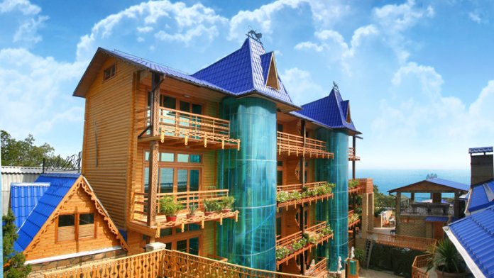 Гостевой дом «Княжий град» расположена в живописной местности, которая граничит с территорией Ялтинского горнолесного заповедника с одной стороны, а с другой стороны виллы открывается обширная панорама на море и горы. Гостевой дом представляет собой уникальный деревянный сруб из экологически чистого материала и выделяется необычной архитектурой.