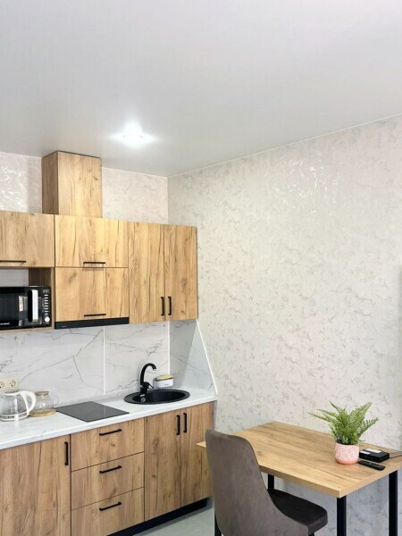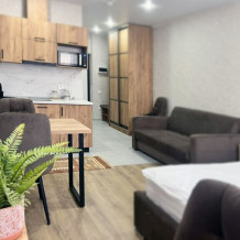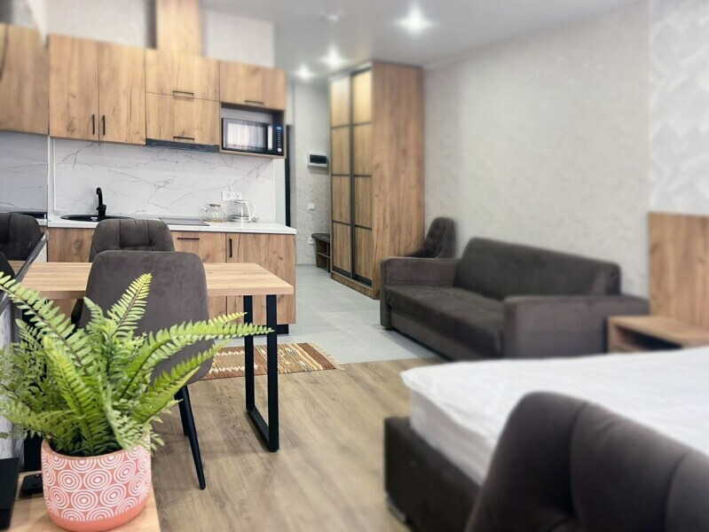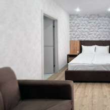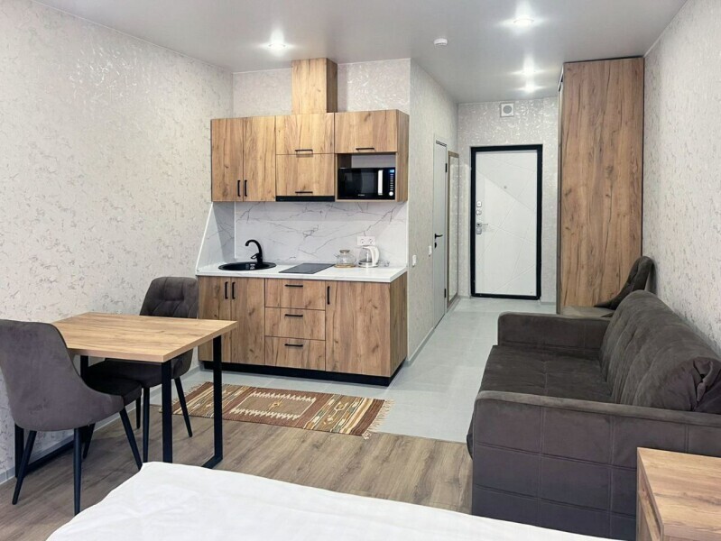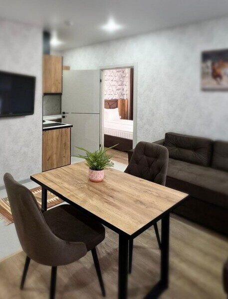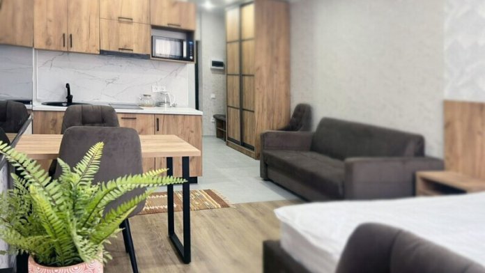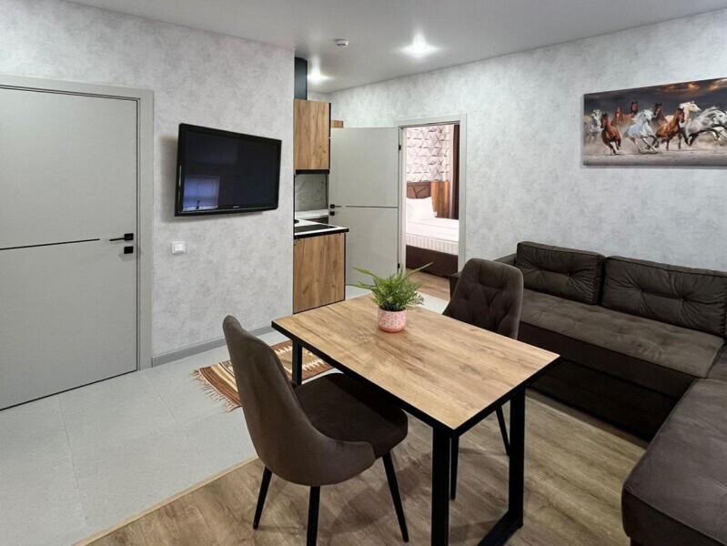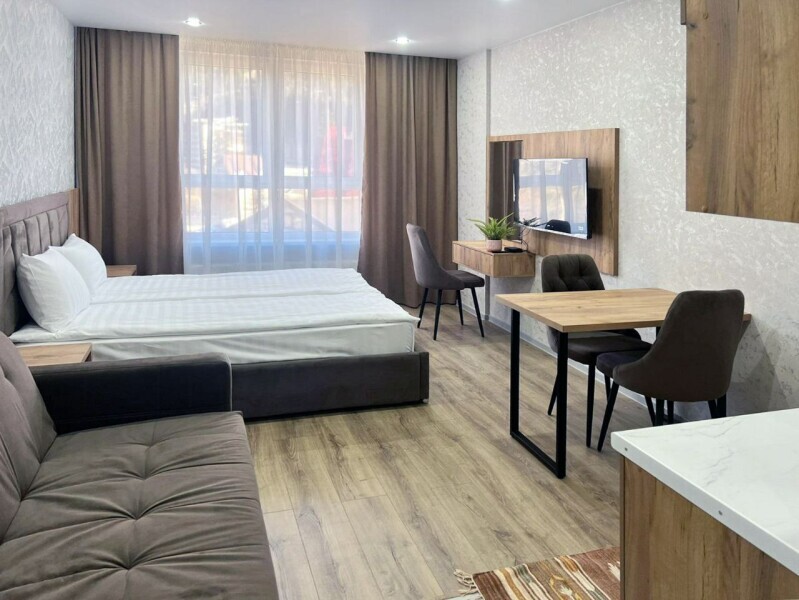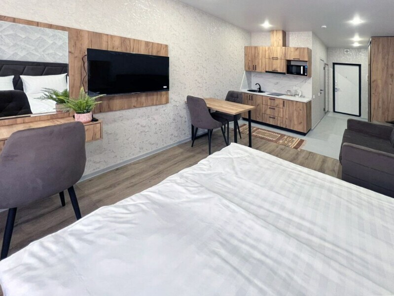 Каждый номер в апарт-отеле оборудован всем необходимым для комфортного проживания. В распоряжении: плита, чайник, холодильник и вся необходимая посуда для приготовления пищи.