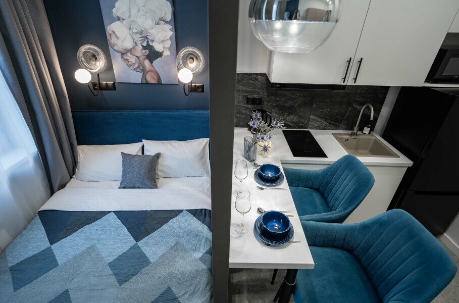 Стильная и современная студия с новой мебелью и дизайнерским ремонтом, рядом с ВДНХ.