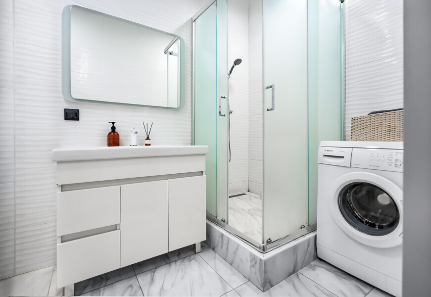 - Душевая кабина, необходимые бытовые приборы: фен, гладильная доска и утюг.