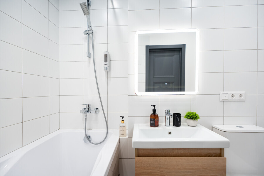 - Душевая кабина, необходимые бытовые приборы: фен, гладильная доска и утюг.