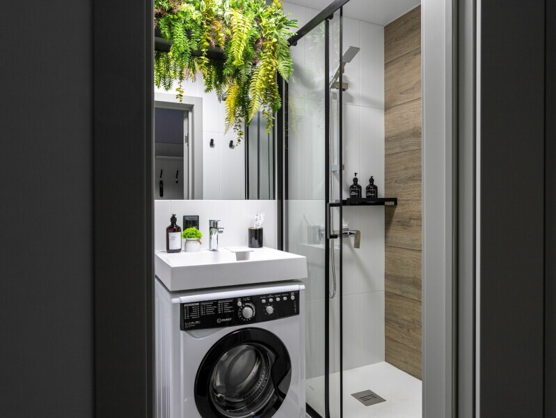 - Душевая кабина, необходимые бытовые приборы: фен, гладильная доска и утюг.