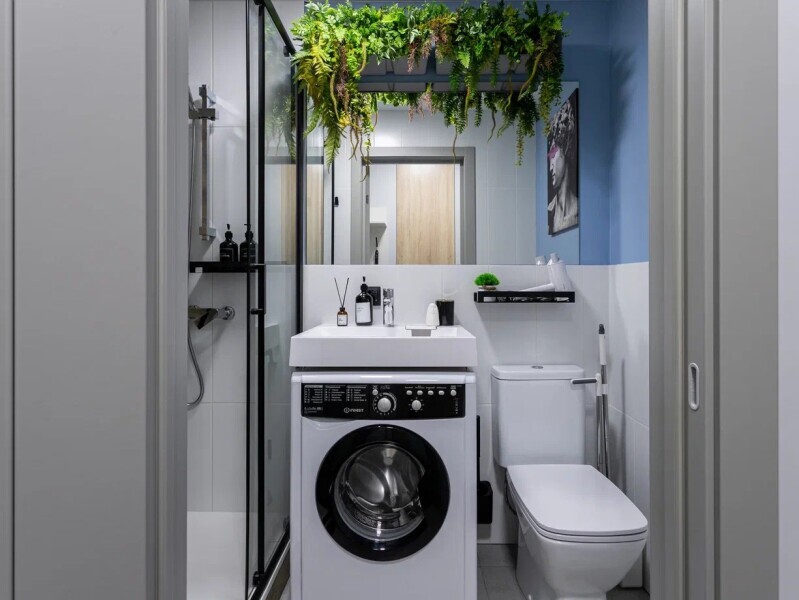 - Душевая кабина, необходимые бытовые приборы: фен, гладильная доска и утюг.