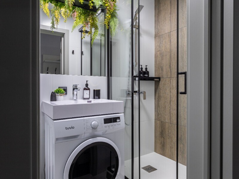 - Душевая кабина, необходимые бытовые приборы: фен, гладильная доска и утюг.