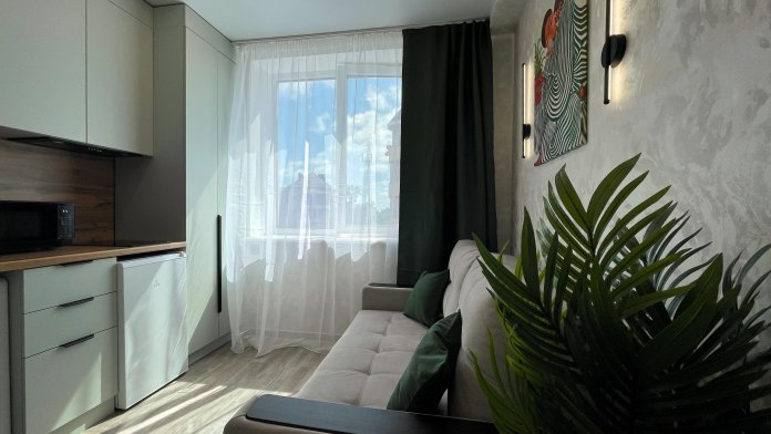 Площадь апартаментов всего 12 м², но здесь есть всё необходимое для комфортного проживания: