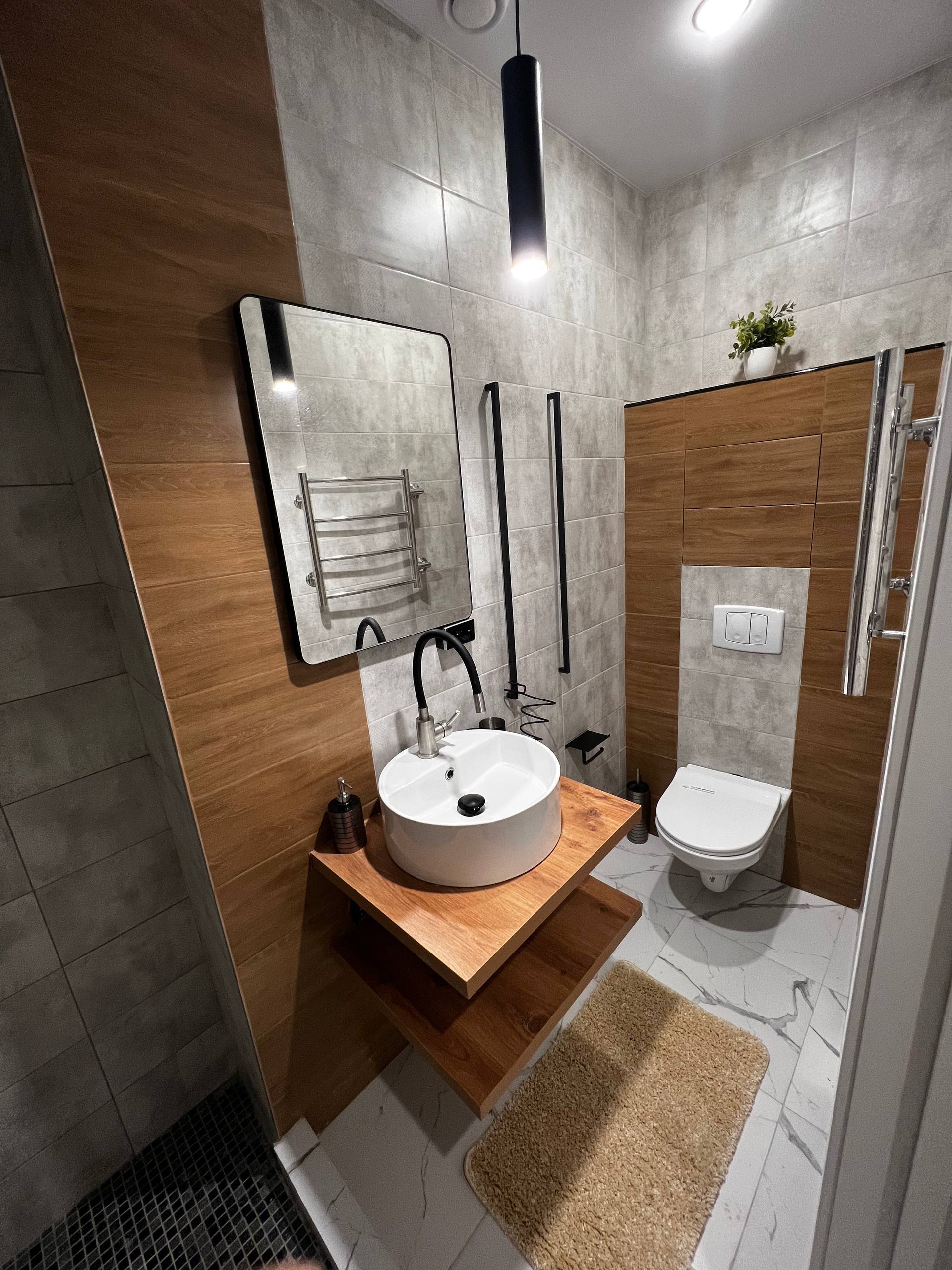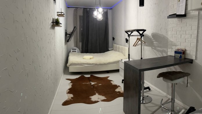 Студия со всеми удобствами: отдельный туалет с подсветкой, студия с большой евро кроватью на двоих, где Ваш отдых станет максимально комфортным.