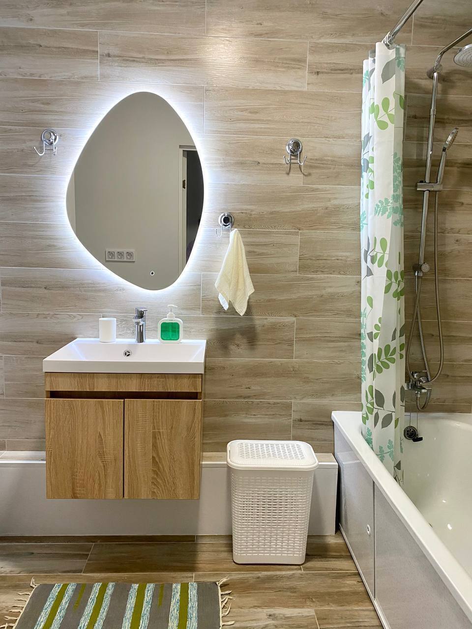В ванной комнате есть всё для Вашего комфорта, включая просторную ванну, где можно расслабиться после дня.
