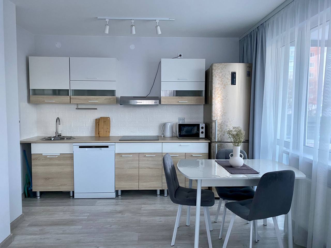 Квартира трёхкомнатная, с двумя отдельными спальнями и кухней-гостиной, идеально подойдет для большой семьи до 6 человек, а также для тех, кто ценит простор и комфорт.