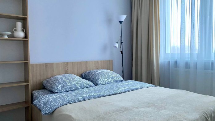 Во второй спальне — двуспальная кровать 140х190 см и рабочий стол.