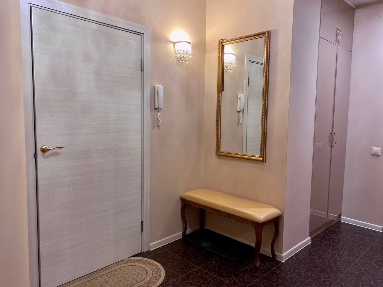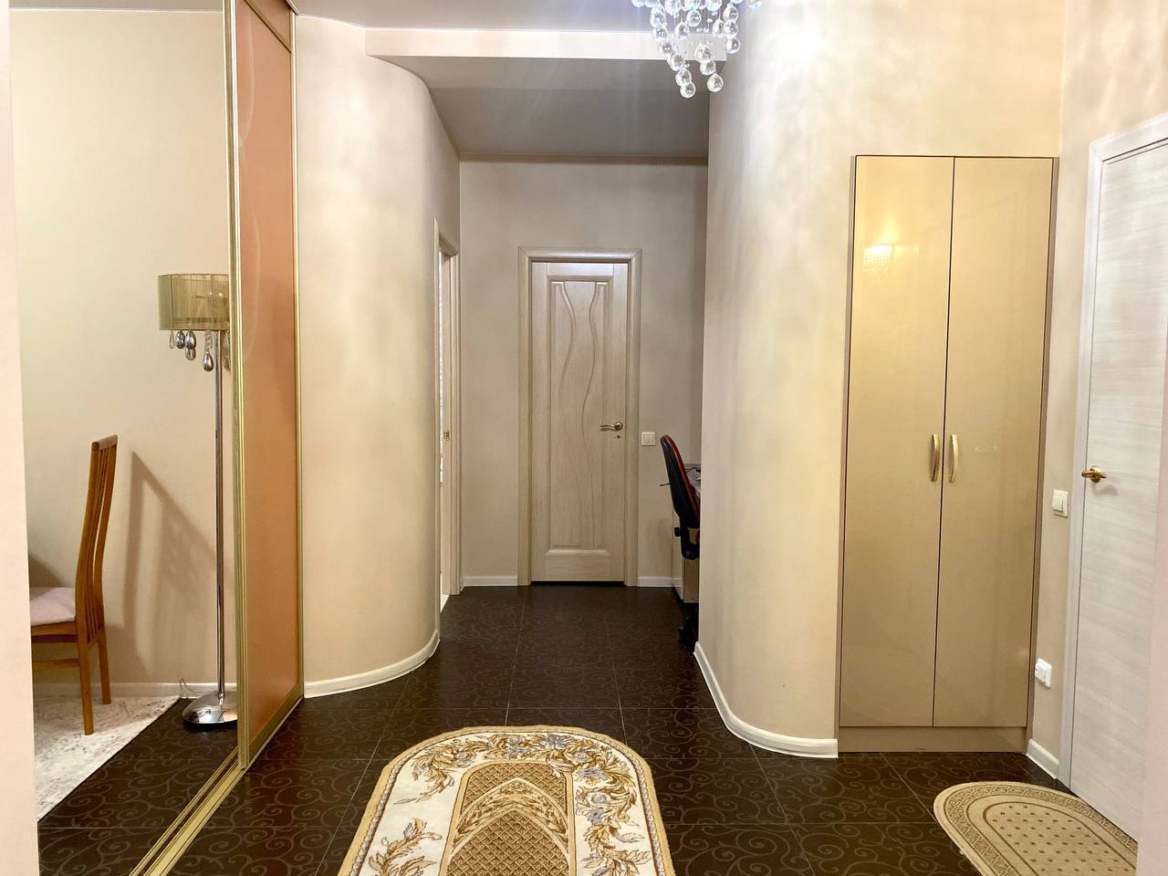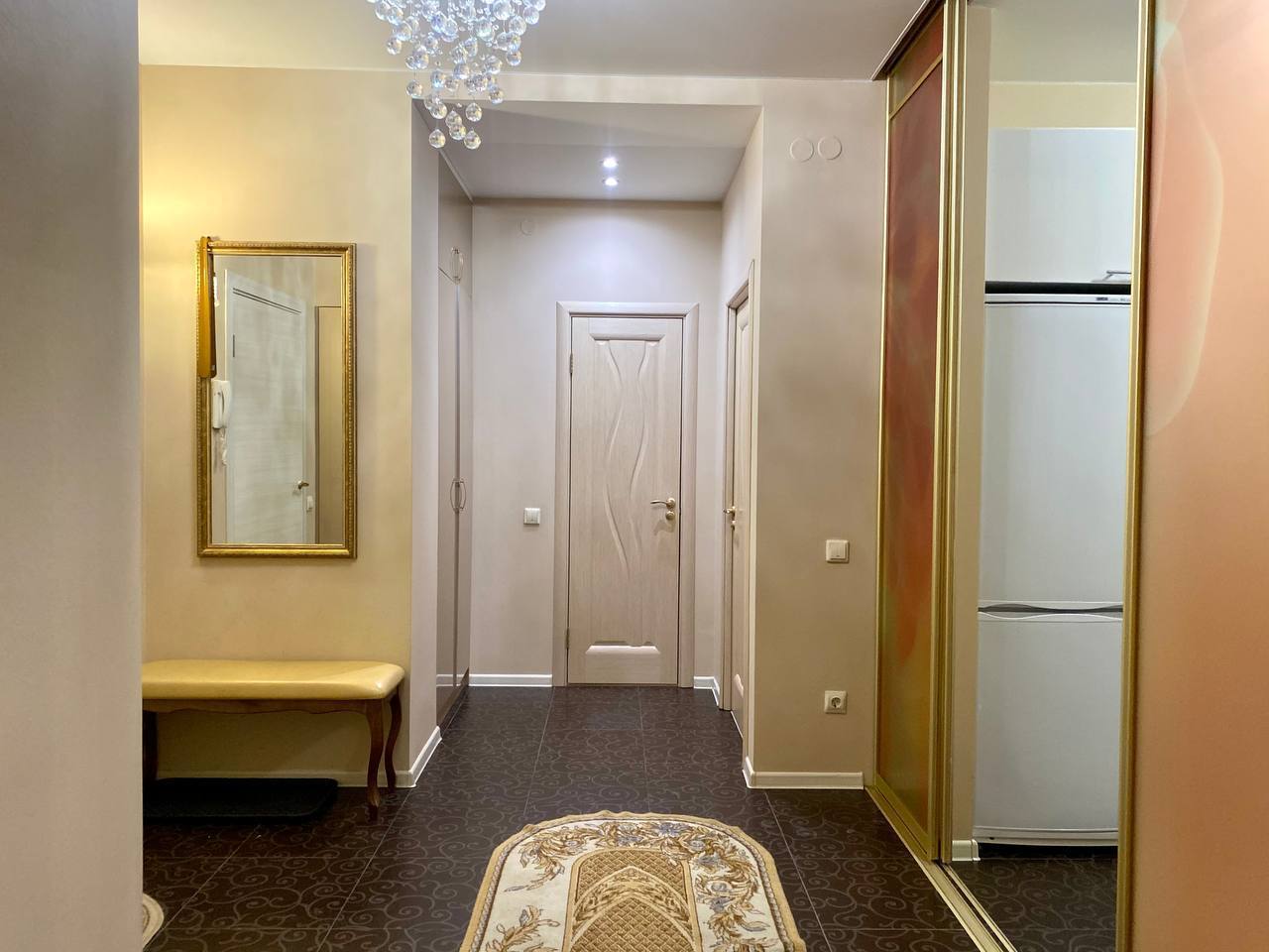 Приглашаем погостить в нашей просторной квартире в классическом стиле. В спальне для Вас двуспальная кровать с белоснежным постельным бельем. Здесь же своя душевая с белоснежными пушистыми полотенцами. В отдельной гостиной большой раскладывающий диван для двух взрослых. А ещё в квартире есть туалетный столик и рабочий стол.