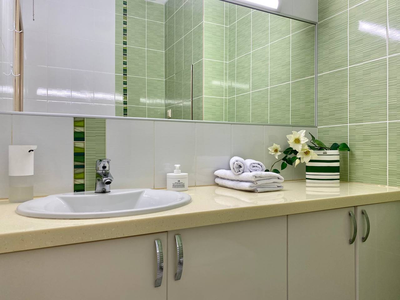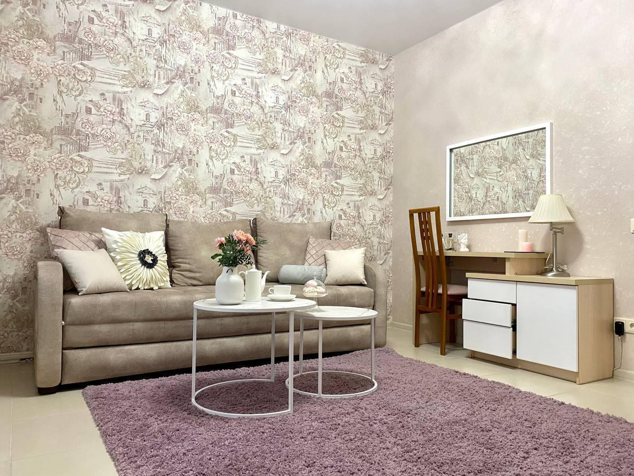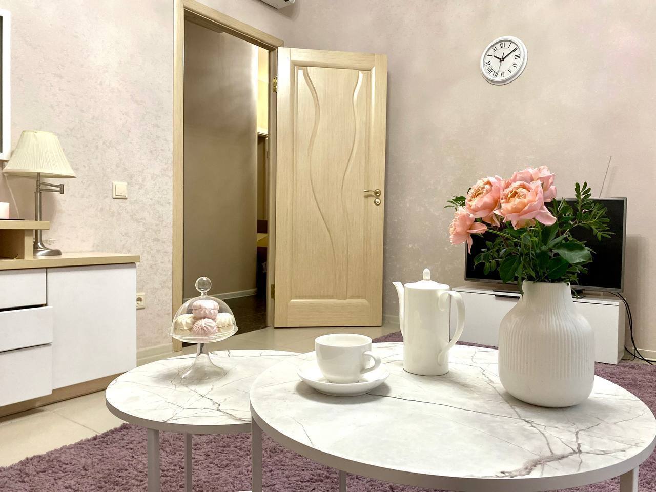 Приглашаем погостить в нашей просторной квартире в классическом стиле. В спальне для Вас двуспальная кровать с белоснежным постельным бельем. Здесь же своя душевая с белоснежными пушистыми полотенцами. В отдельной гостиной большой раскладывающий диван для двух взрослых. А ещё в квартире есть туалетный столик и рабочий стол.