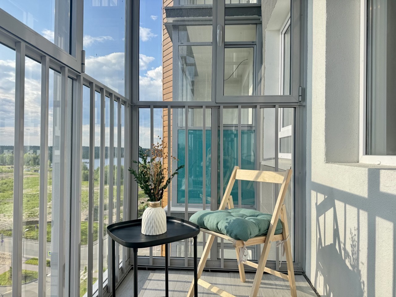 На балконе обустроена уютная зона для отдыха — идеальное место для утреннего кофе или вечерних посиделок с видом на озеро. На территории комплекса предусмотрено большое количество парковочных мест. Рядом расположены пекарня, магазины и пункты выдачи заказов, а супермаркет «Пятёрочка» находится всего в 5 минутах ходьбы.