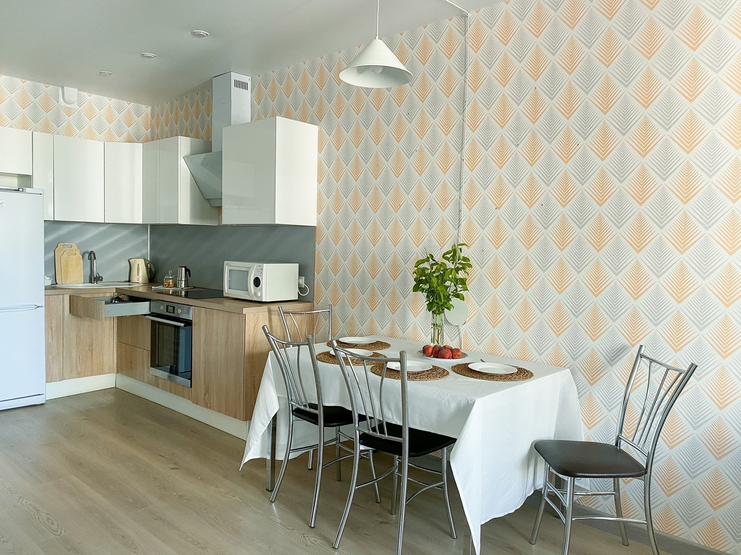 Просторная кухонная зона с обеденным столом для 4 человек.