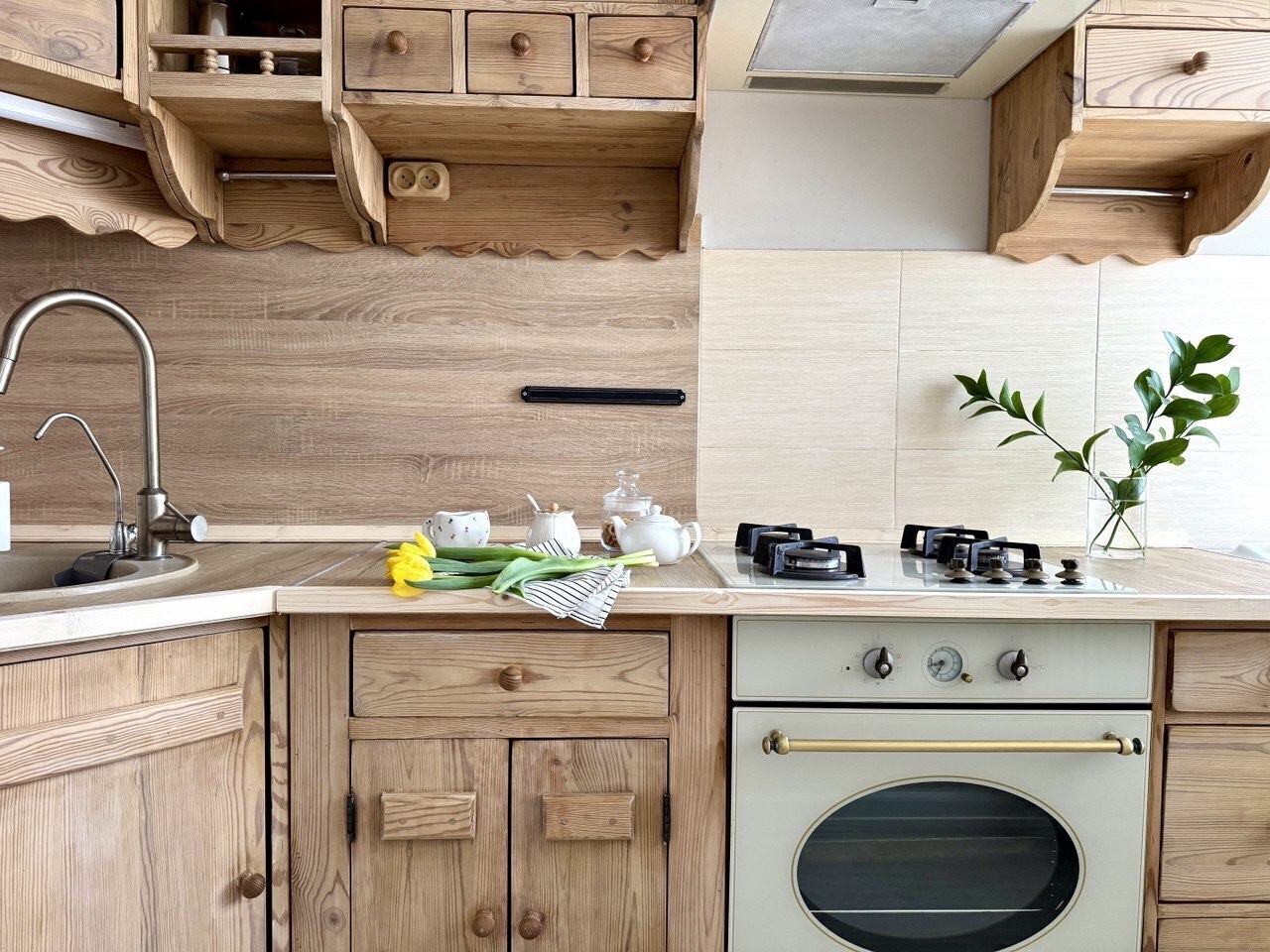 На полностью оборудованной кухне Вы найдете все необходимое для приготовления еды и сервировки, включая всю необходимую посуду и бытовую технику. А также у нас есть отдельный кран с чистой отфильтрованной водой.