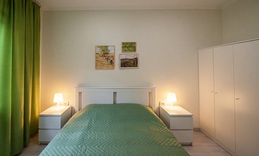 • 1 двуспальная кровать, 2 односпальных кровати, 1 диван-кровать, детская кроватка (по запросу)