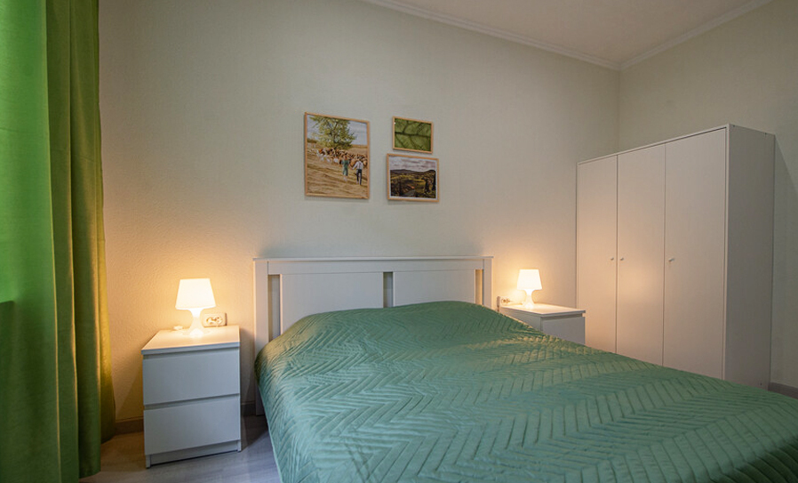 • 1 двуспальная кровать, 2 односпальных кровати, 1 диван-кровать, детская кроватка (по запросу)
