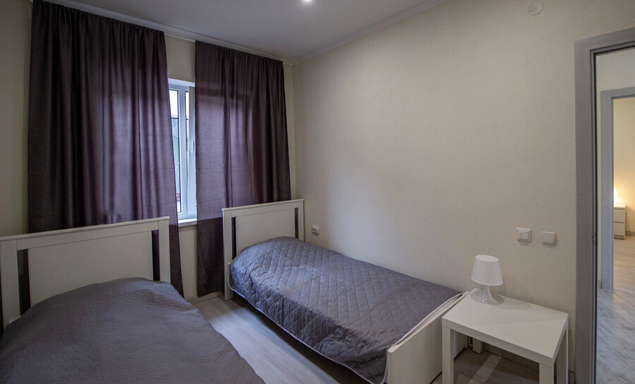 • 1 двуспальная кровать, 2 односпальных кровати, 1 диван-кровать, детская кроватка (по запросу)