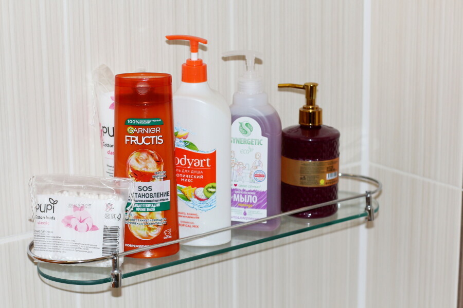 - бытовые и косметические принадлежности (шампунь, гель для душа, жидкое мыло для рук, туалетная бумага, кухонные полотенца)