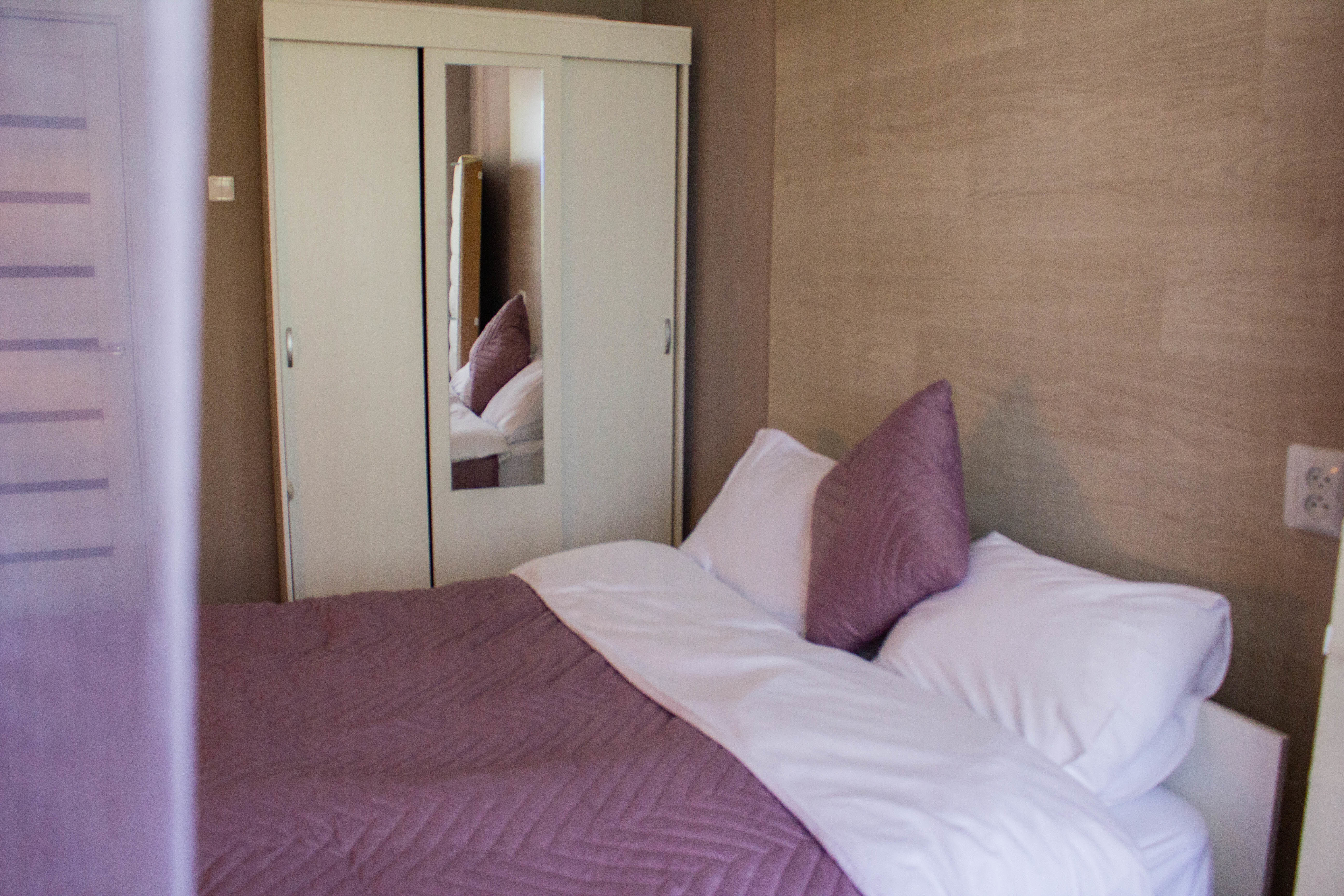 В квартире спальня с двуспальной кроватью, в гостиной двуспальный диван и раскладная кровать.