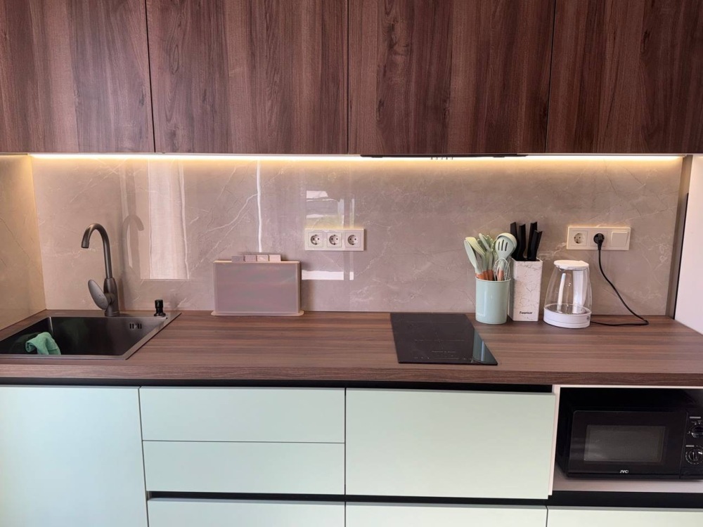 Апартаменты со всеми удобствами:: интернет, кондиционер, телевизор, стиральная машина, собственная кухня, посуда, микроволновая печь, чайник, постельное белье, полотенца.