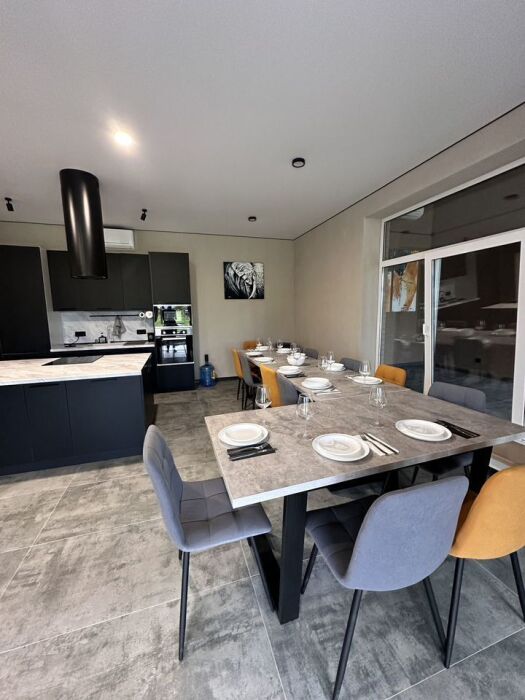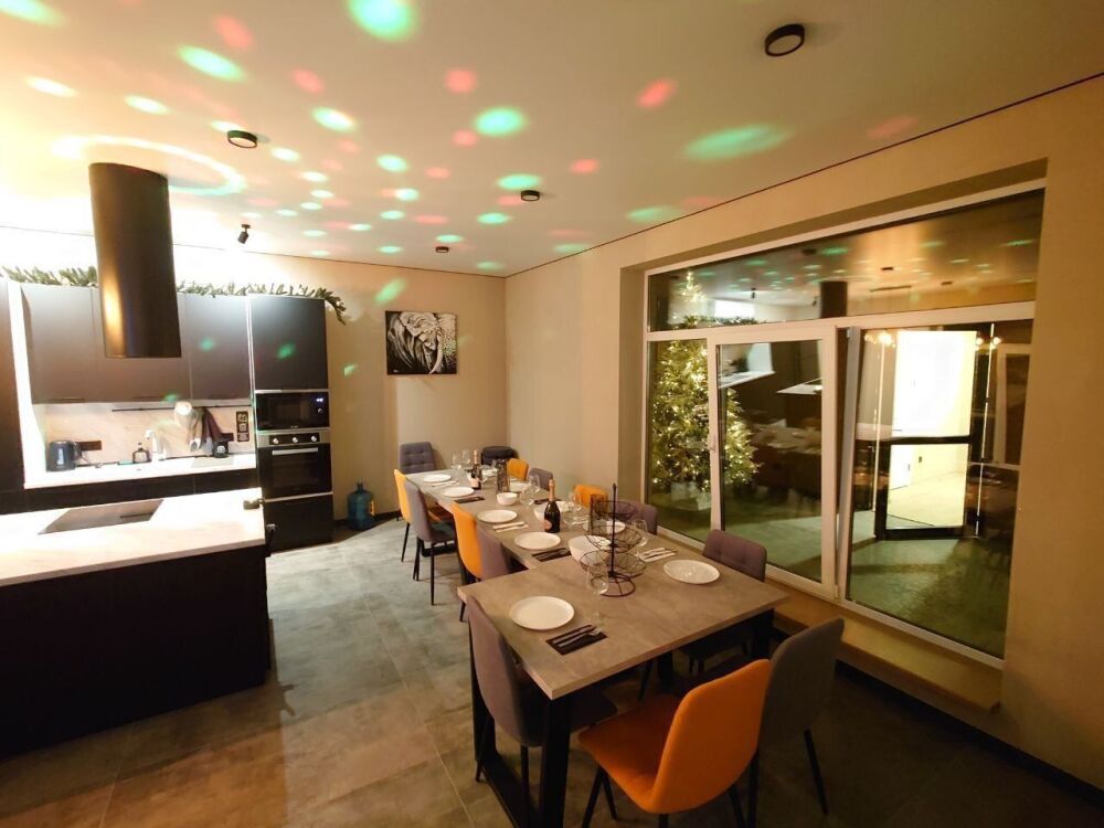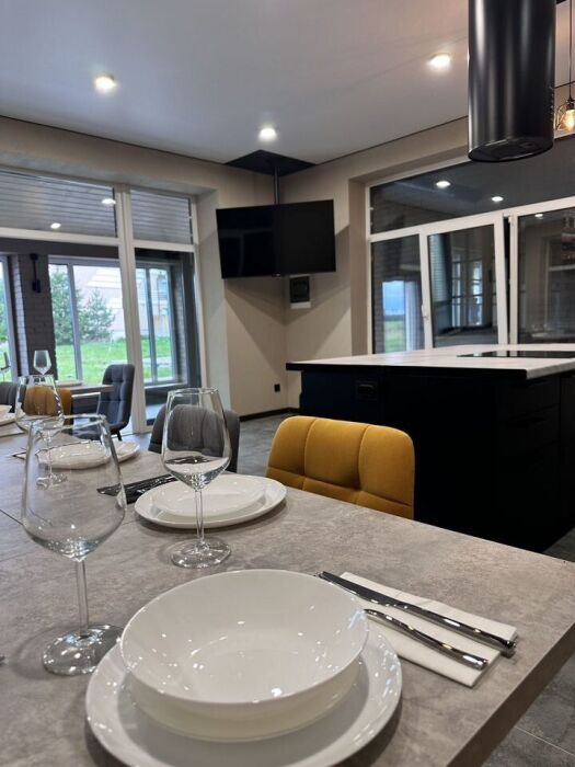 - Просторный трехэтажный коттедж: 5 спален, 3 санузла, просторная кухня-столовая с караоке.