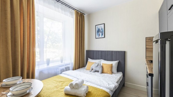 Студия находится в пешей доступности от метро Тульская. Дo центрa Mocквы 10 мин. на мeтрo.