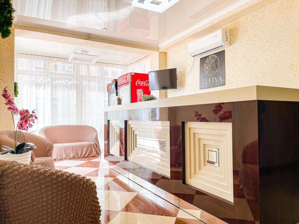 Семейный отель «Тефия» расположен в шаговой доступности (900 метров или 10 минут ходьбы) от белоснежных песчаных пляжей.