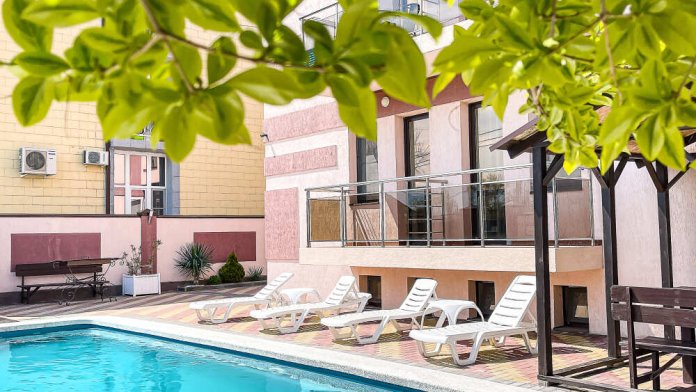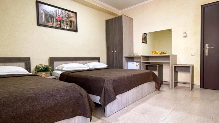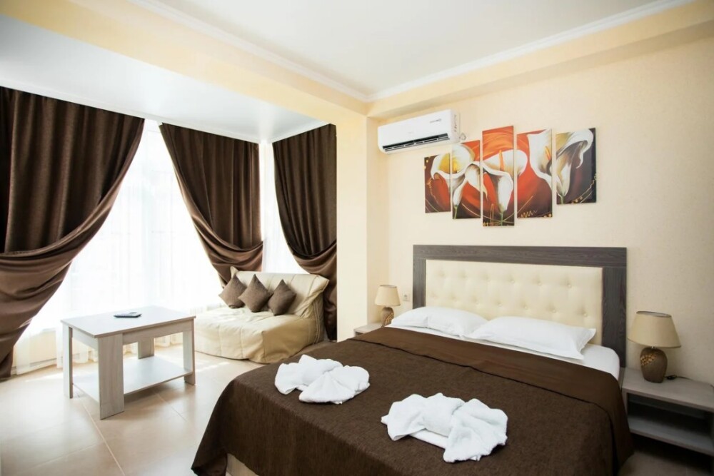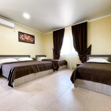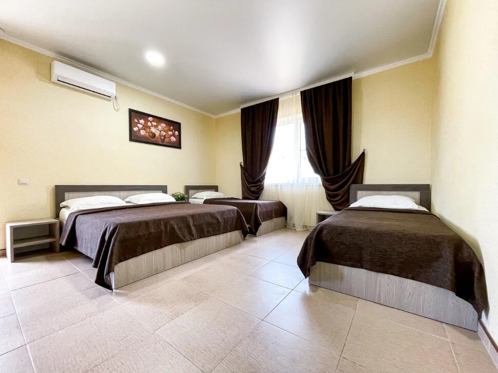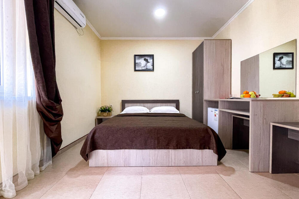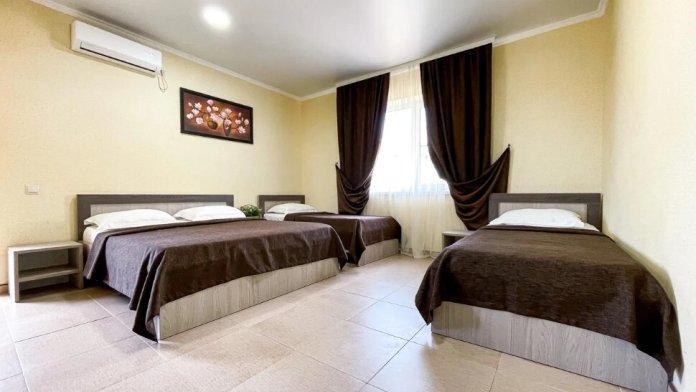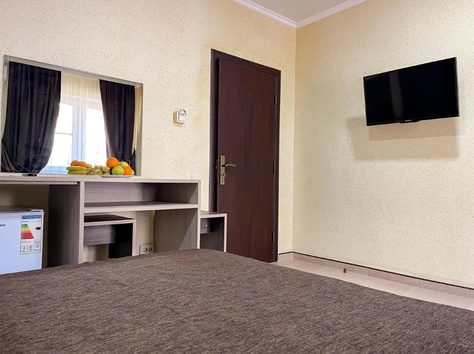 К услугам гостей: комфортабельные номера со всеми удобствами, большой бассейн с шезлонгами, большая просторная территория, детская площадка, батут, ежедневная детская анимация, недорогая столовая, мангал.