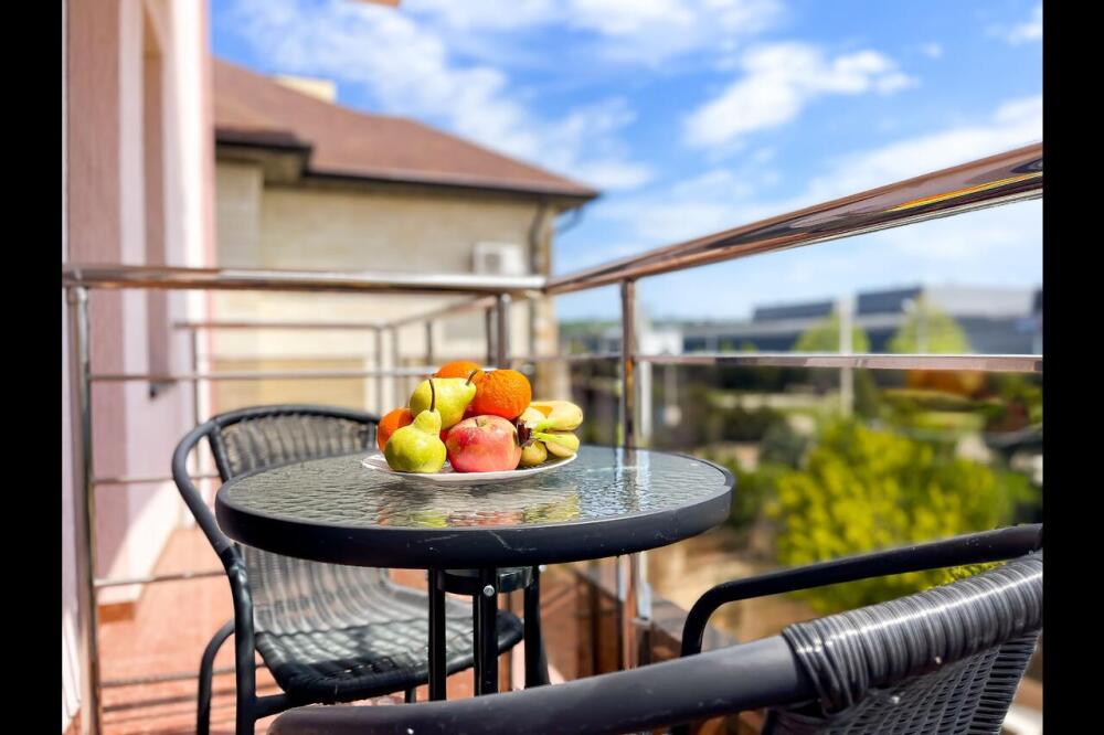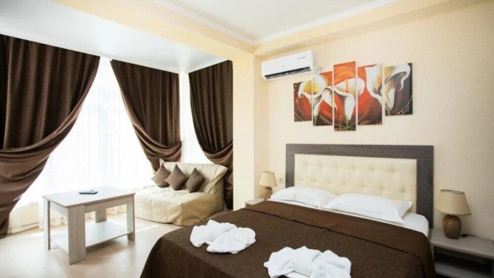 Двуспальная кровать, односпальная кровать, дополнительное место еврораскладушка или детская кроватка бесплатно, душ, туалет, ТВ, холодильник, кондиционер, балкон.