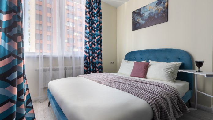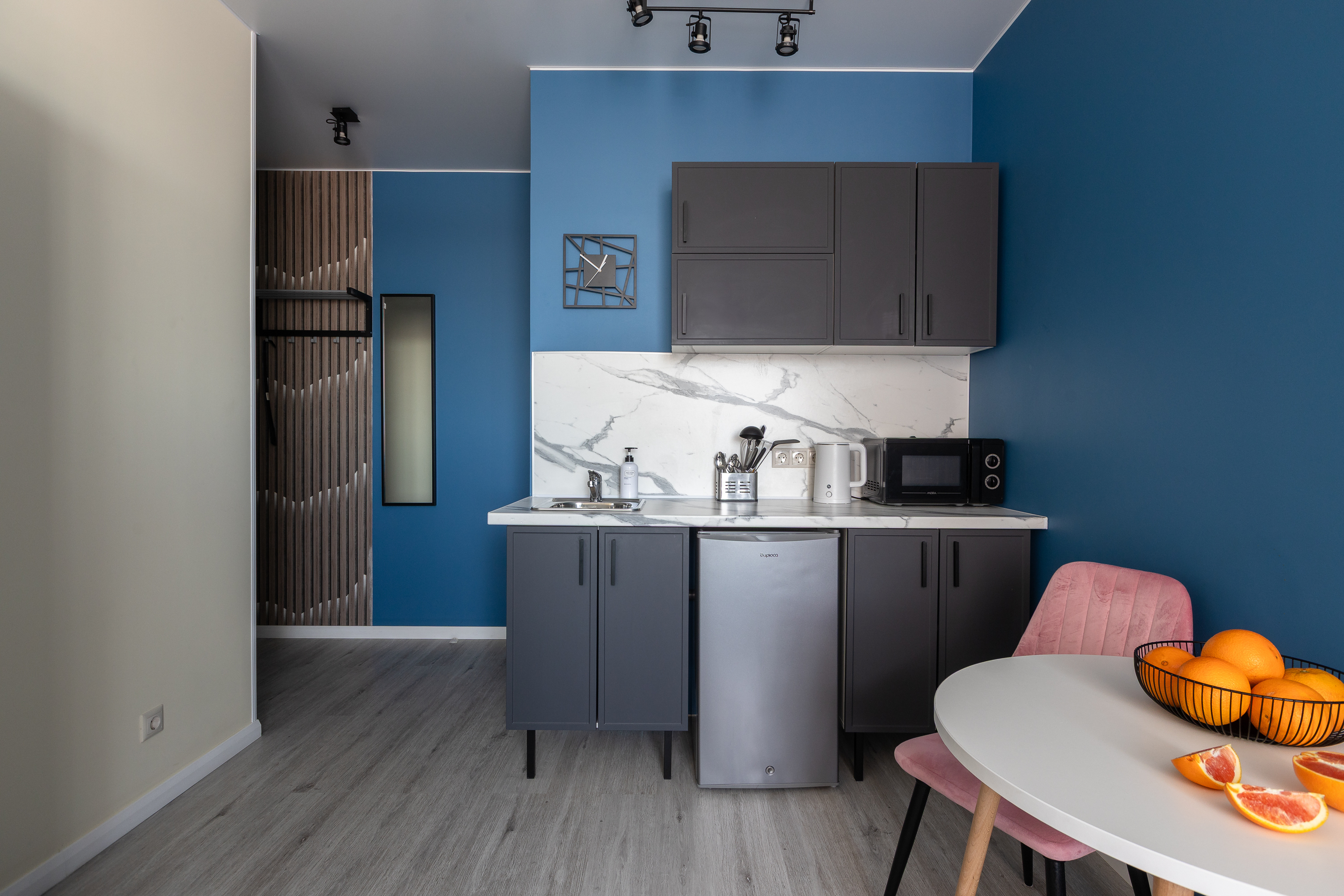 Квартира «Ли Апартментс Индиго» - это новая, стильная студия в современном илом комплексе комфорт-класса. Яркий и уютный интерьер создает идеальную атмосферу для отдыха после насыщенного дня. К Вашим услугам двуспальная кровать, Smart TV и все необходимое для комфортного проживания. А на 1 этаже дома Вы найдете магазины и уютное кафе. Квартира идеально подходит для 1 или 2 человек.