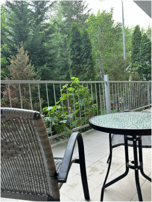Имеется терраса с видом на сад, горы, оборудованная комплектом мебели.