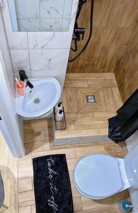 - Совмещенный санузел и средства личной гигиены.