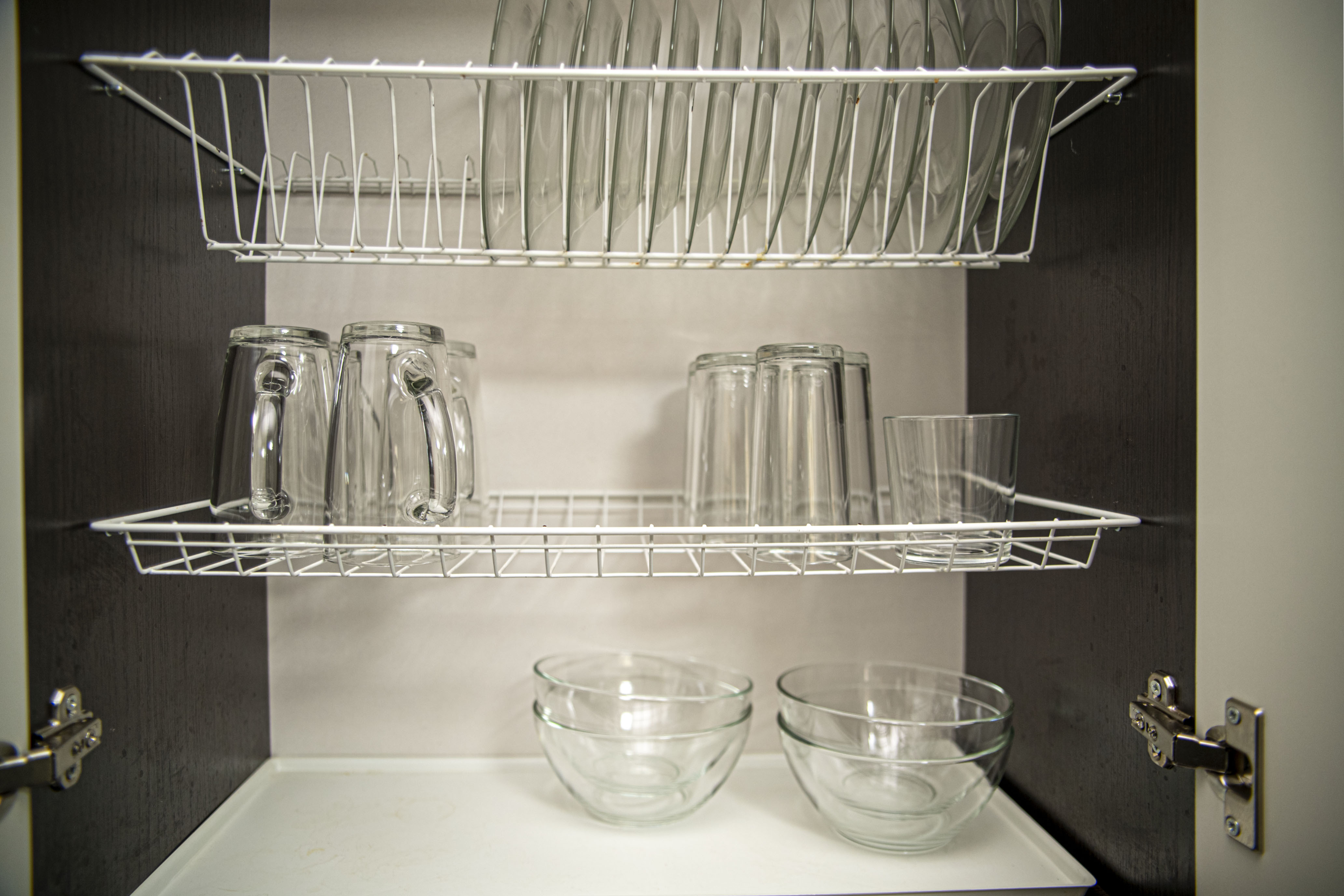 - всё нужное для проживания: кофе, чай, посуда, утюг, стиральная машина, сушилка, гладильная доска;