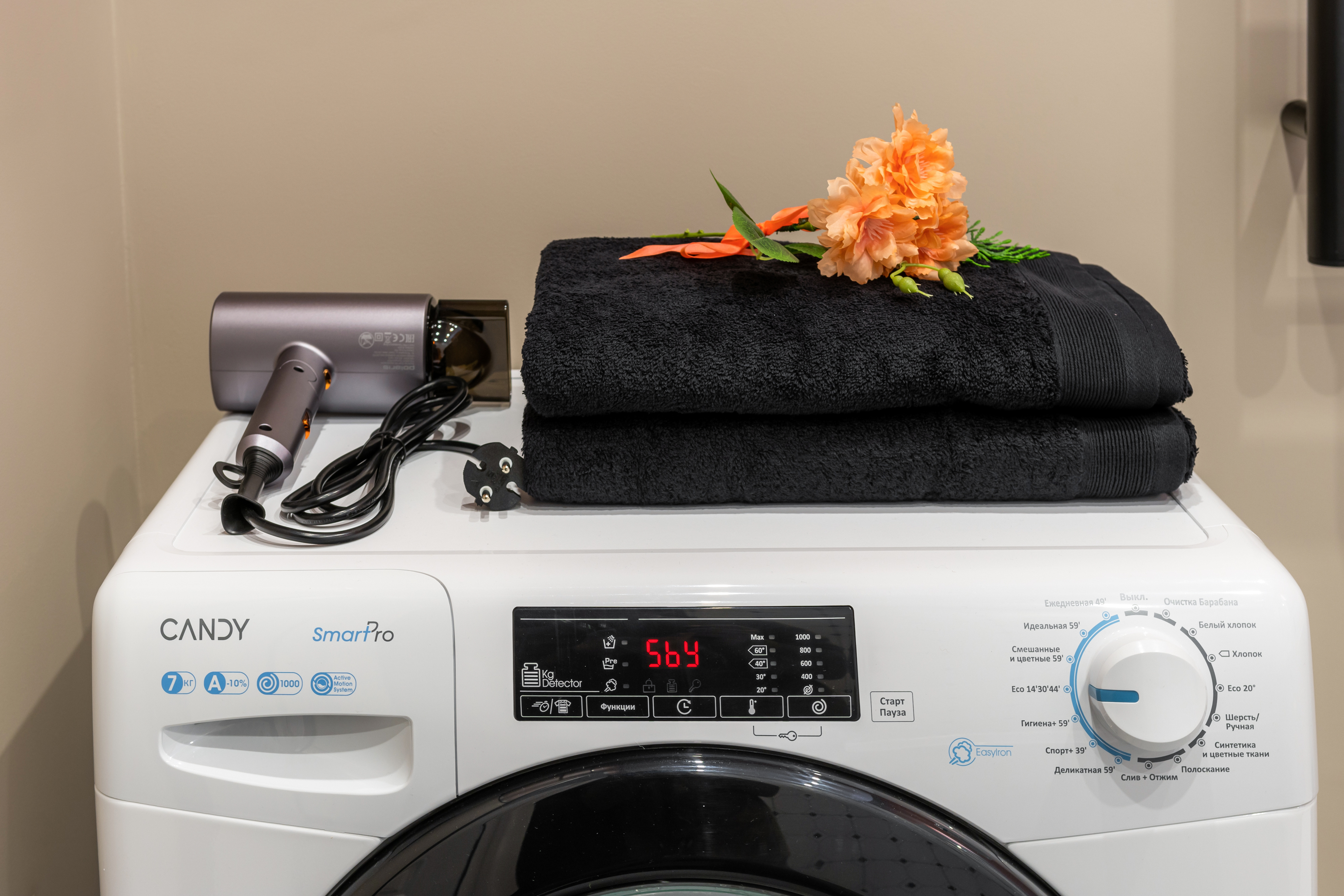 - всё нужное для проживания: кофе, чай, посуда, утюг, стиральная машина, сушилка, гладильная доска;