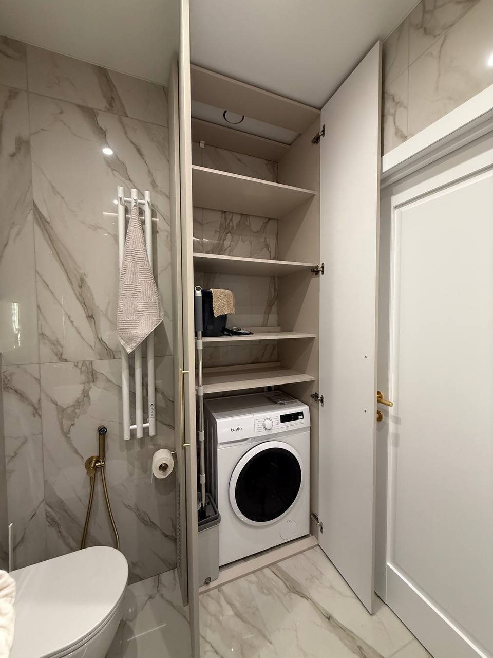 - всё нужное для проживания: кофе, чай, посуда, утюг, стиральная машина, сушилка, гладильная доска;