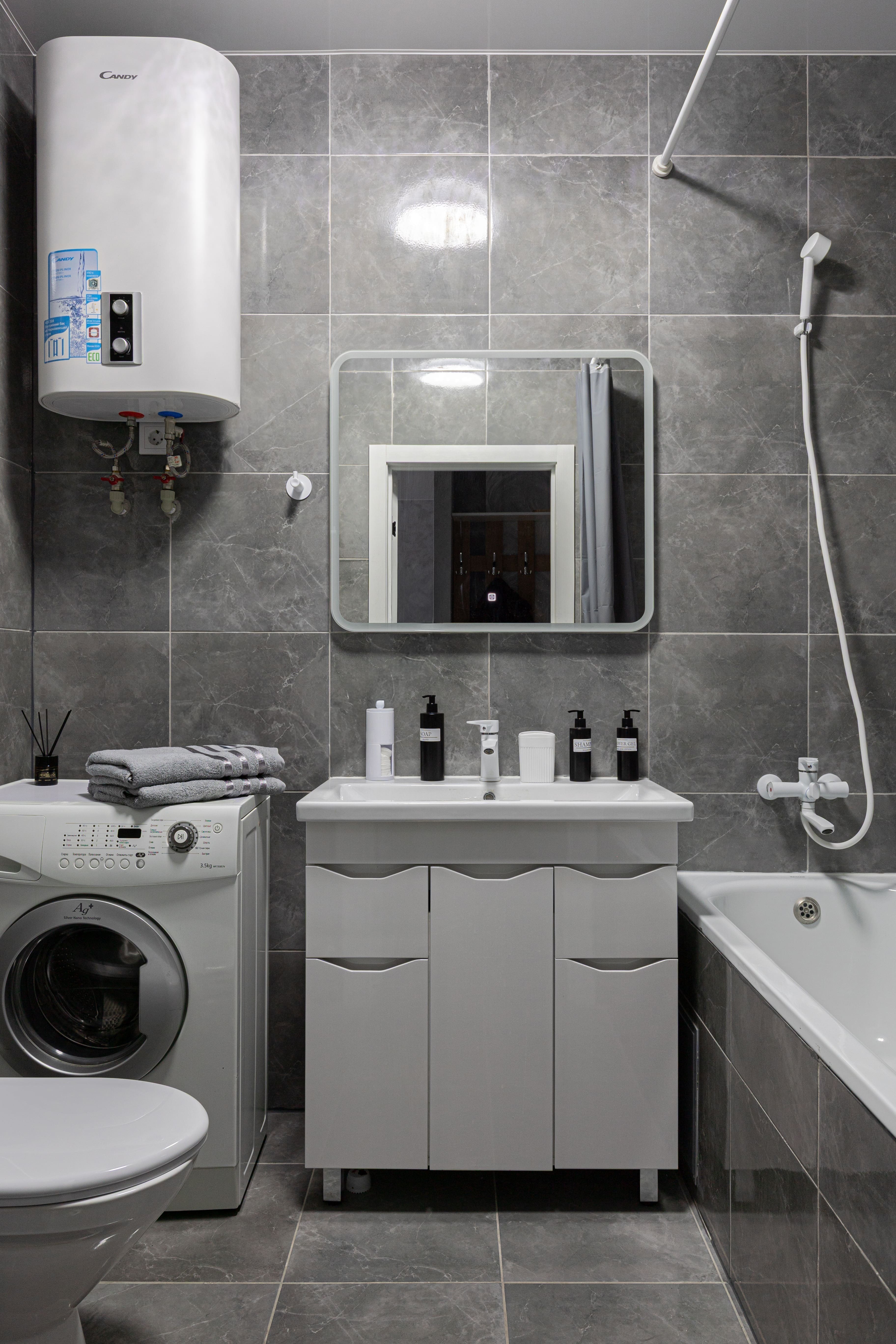 - всё нужное для проживания: кофе, чай, посуда, утюг, стиральная машина, сушилка, гладильная доска;