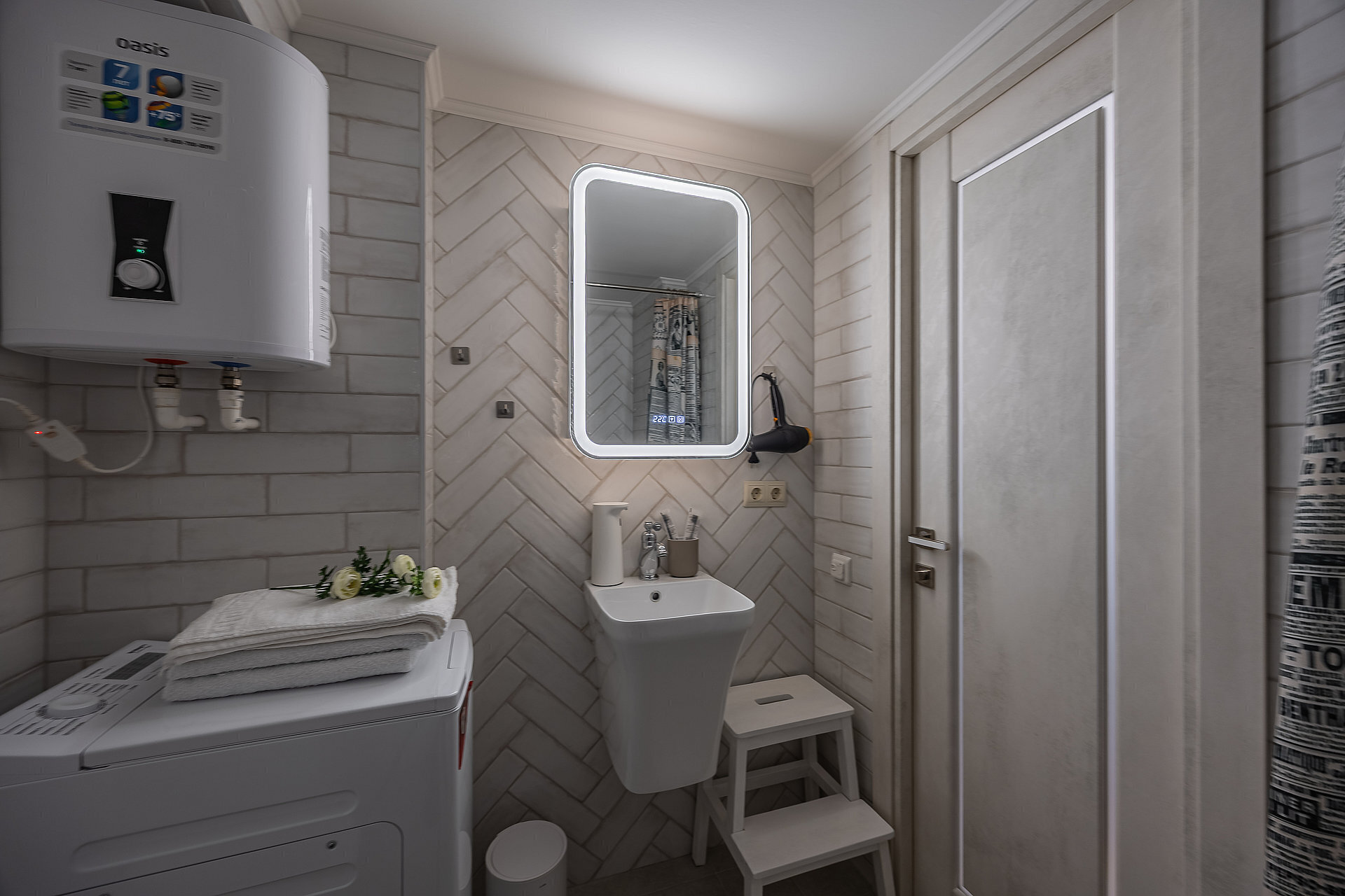 Всё нужное для проживания: кофе, чай, посуда, утюг, стиральная машина, сушилка, гладильная доска.